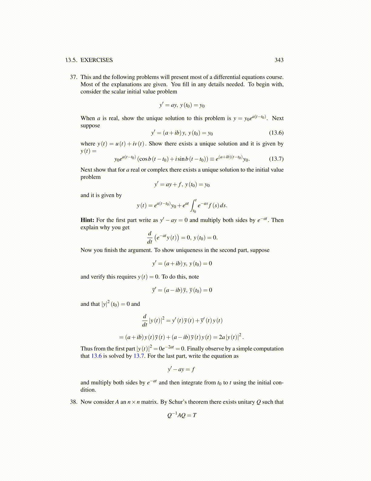 37. This and the following problems will present most of a differential equations course.Most of the explanations are given. You fill in any details needed. To begin with,consider the scalar initial value problem