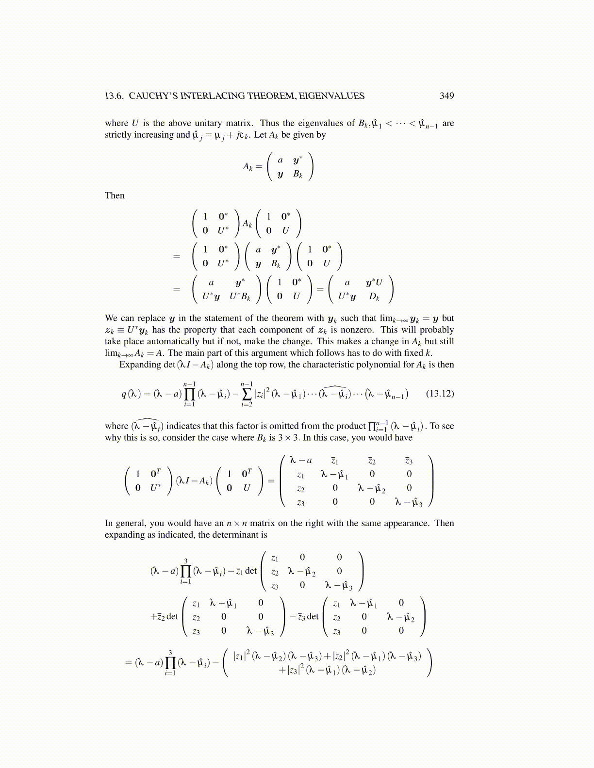 13.6. CAUCHY’S INTERLACING THEOREM, EIGENVALUES 349
