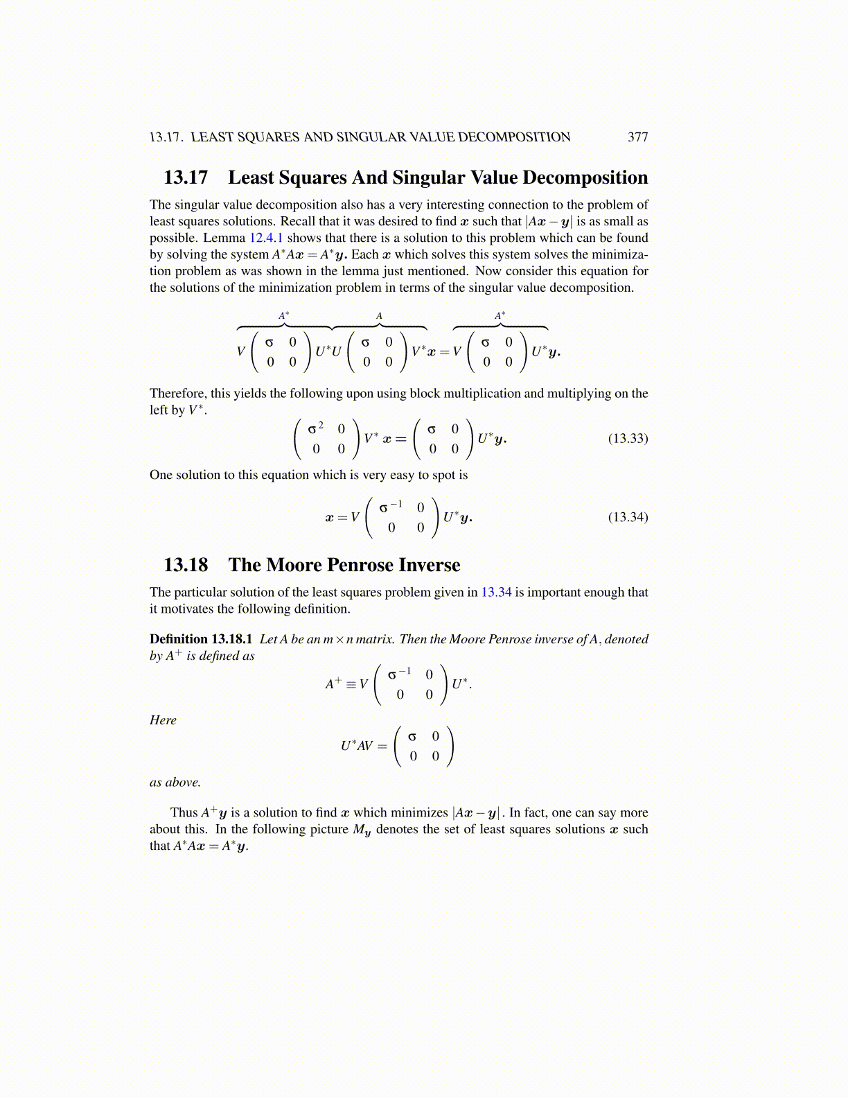 13.17. LEAST SQUARES AND SINGULAR VALUE DECOMPOSITION 377
