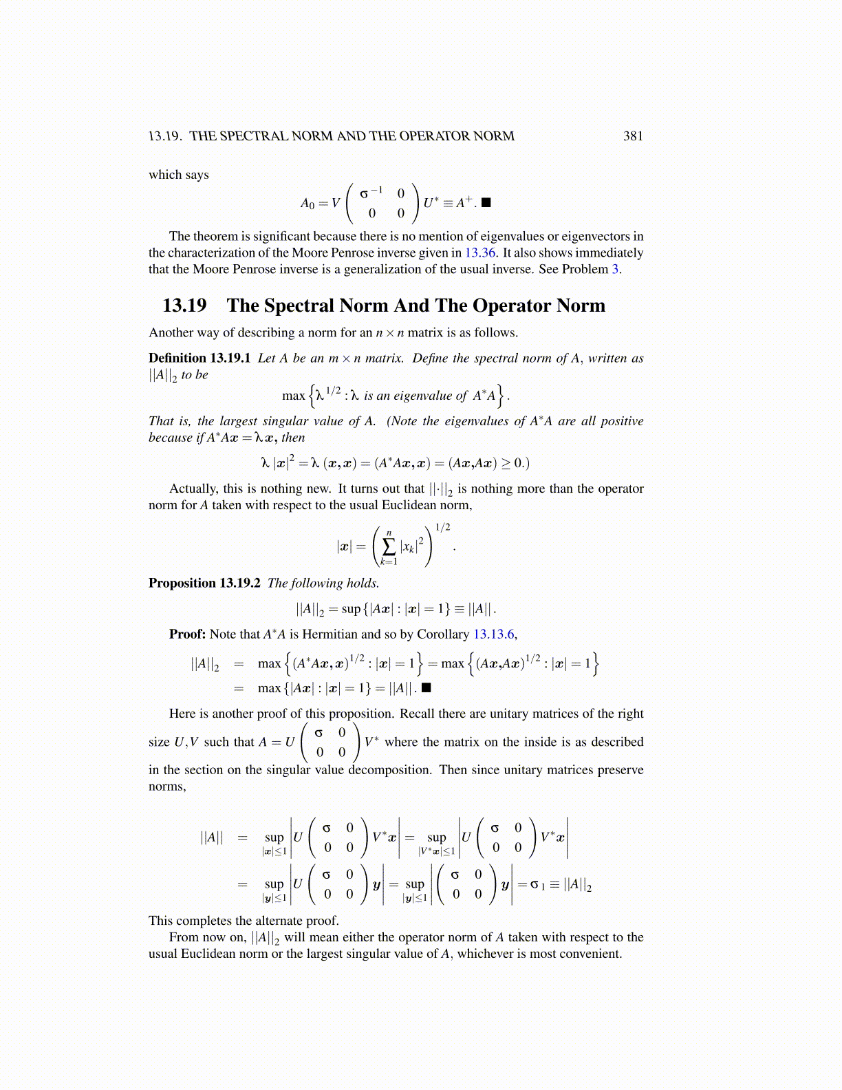 13.19. THE SPECTRAL NORM AND THE OPERATOR NORM 381