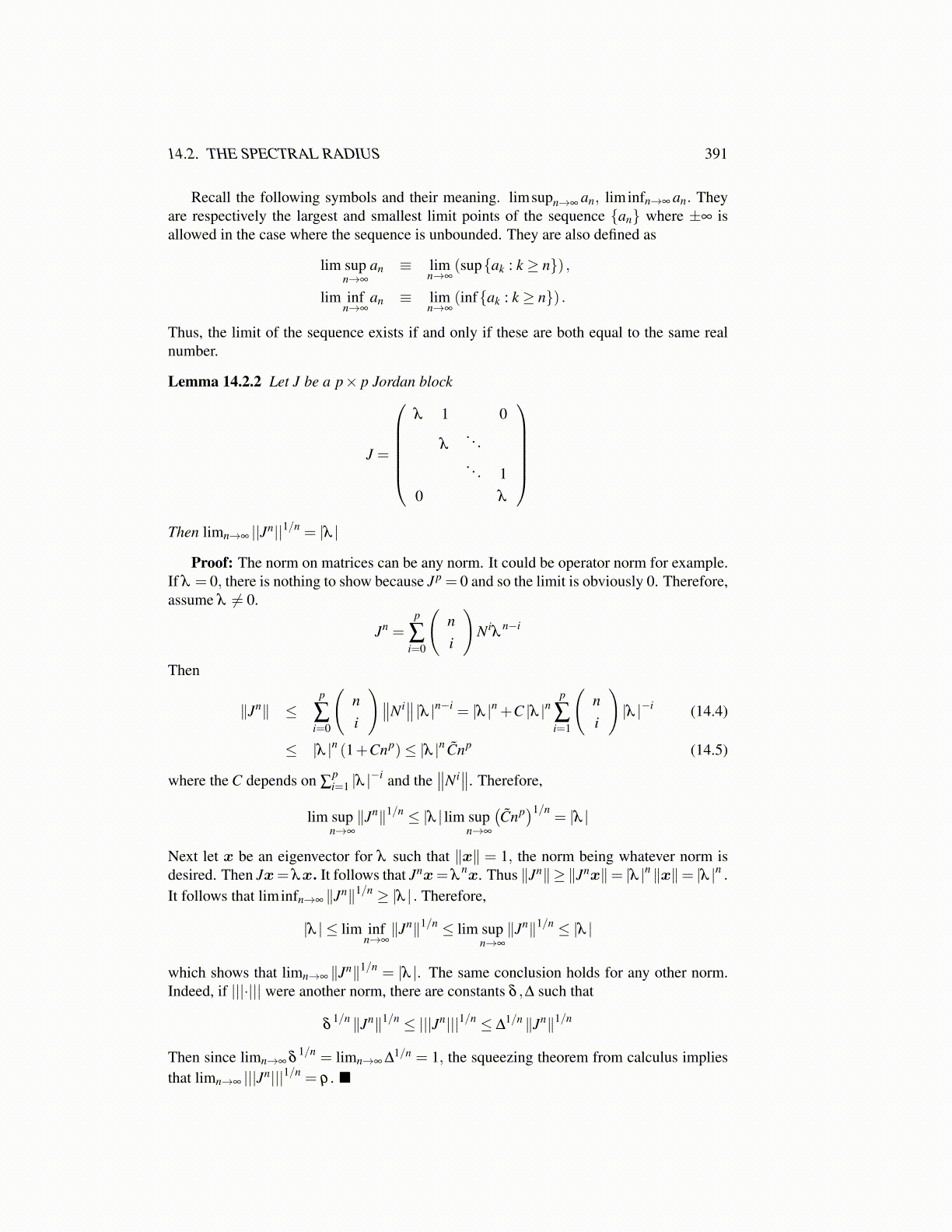 Next let x be an eigenvector for λ such that ∥x∥ = 1, the norm being whatever norm isdesired. Then Jx= λx. It follows that Jnx= λ
