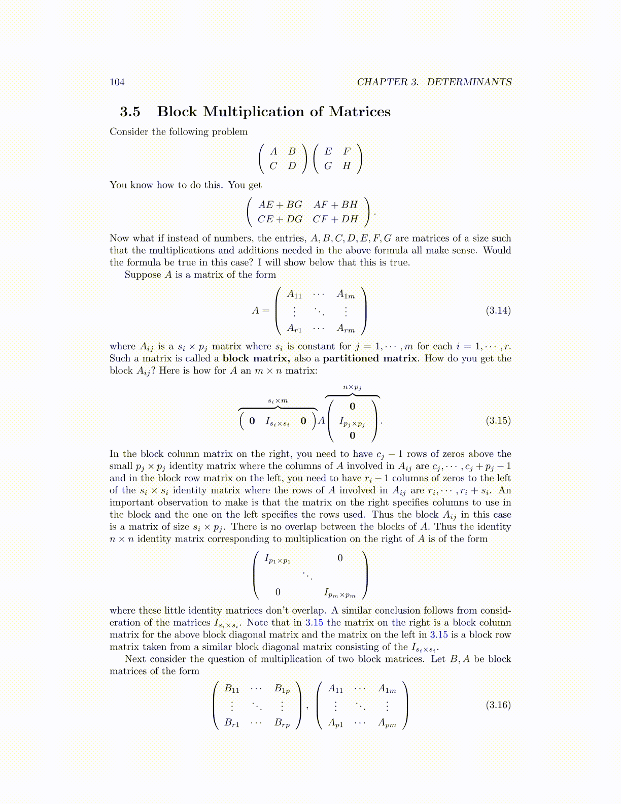 where Aij is a si × pj matrix where si is constant for j = 1, · · · ,m for each i = 1, · · · , r.Such a matrix is called a block matrix, also a partitioned matrix. How do you get theblock Aij? Here is how for A an m× n matrix: