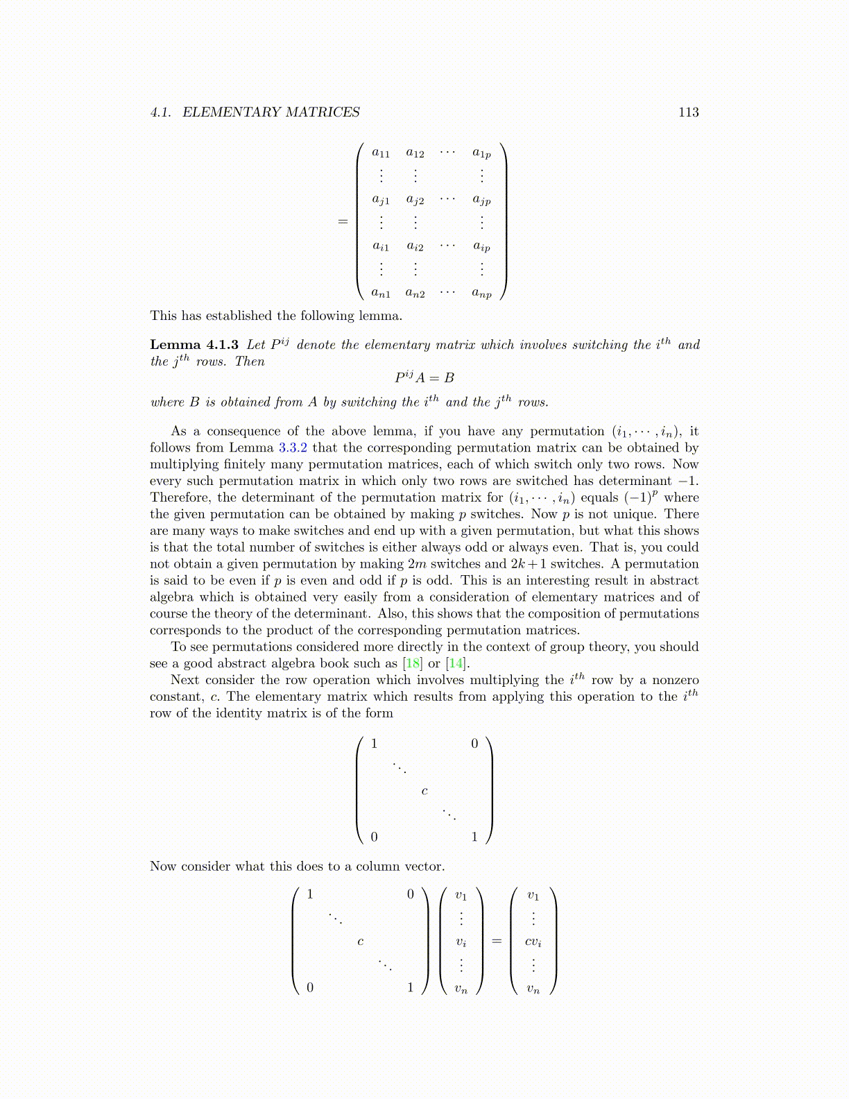 Lemma 4.1.3 Let P ij denote the elementary matrix which involves switching the ith andthe jth rows. Then
