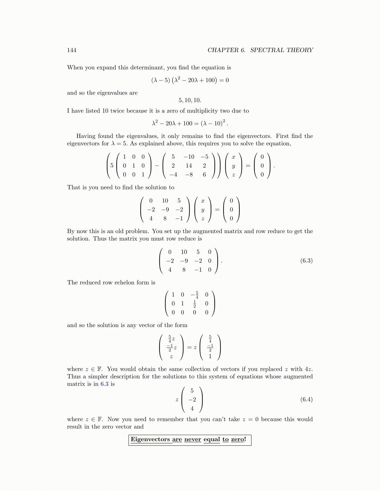 Having found the eigenvalues, it only remains to find the eigenvectors. First find theeigenvectors for λ = 5. As explained above, this requires you to solve the equation,5