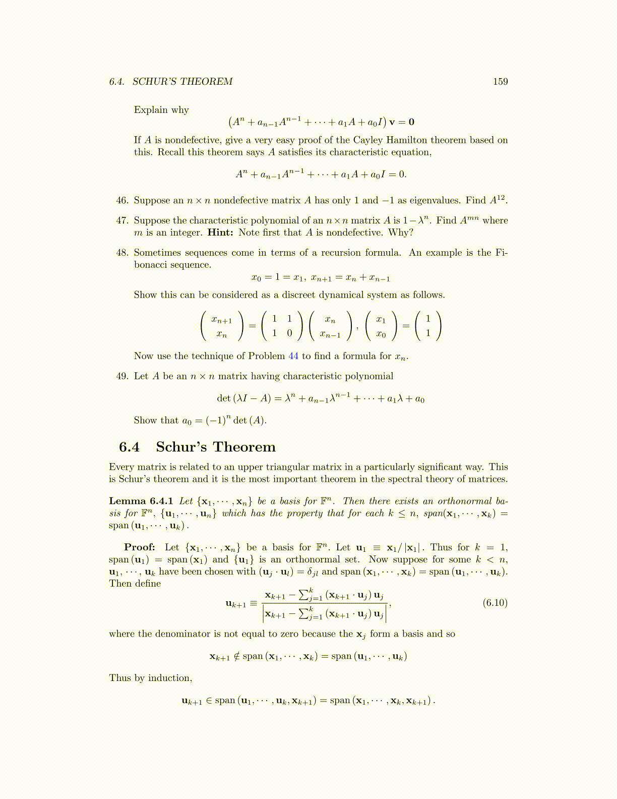 Lemma 6.4.1 Let {x1, · · · ,xn} be a basis for Fn. Then there exists an orthonormal ba-sis for Fn, {u1, · · · ,un} which has the property that for each k ≤ n, span(x1, · · · ,xk) =span (u1, · · · ,uk) .