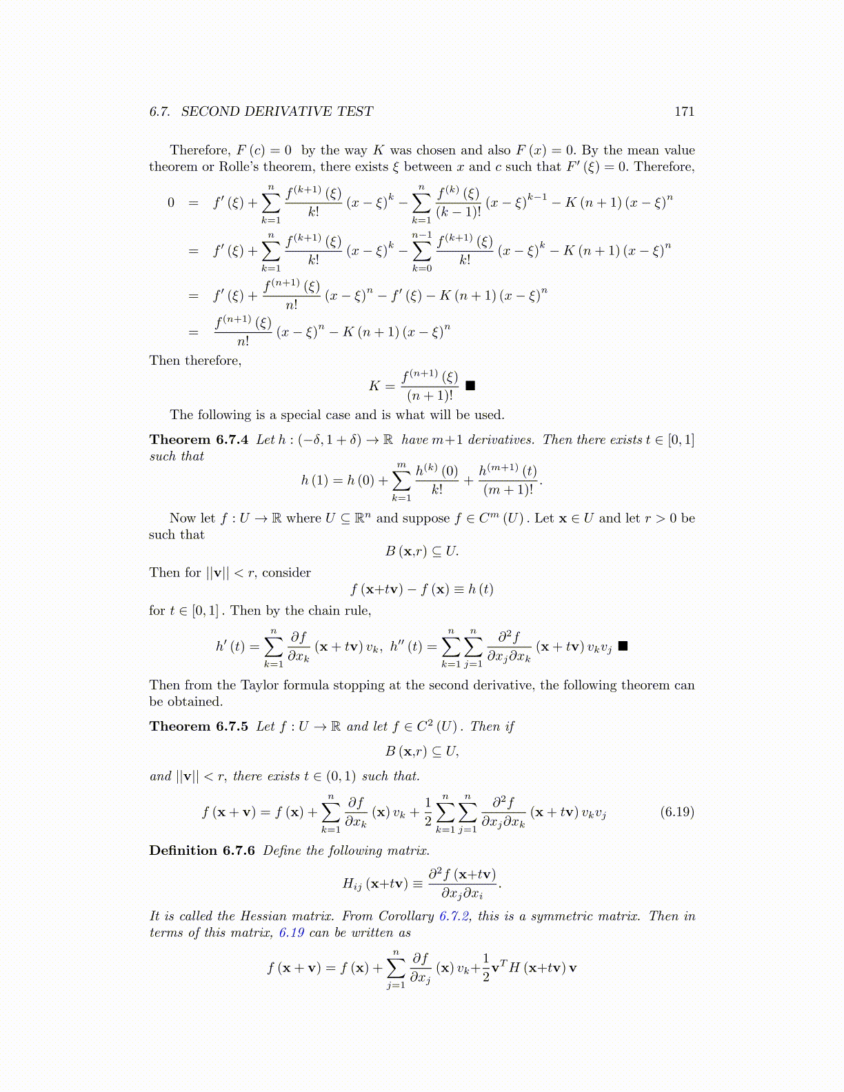Theorem 6.7.4 Let h : (−δ, 1 + δ) → R have m+1 derivatives. Then there exists t ∈ [0, 1]such that