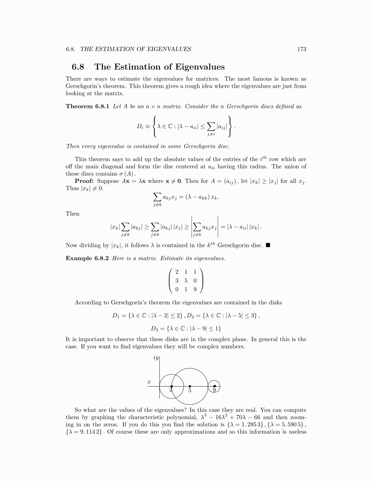6.8. THE ESTIMATION OF EIGENVALUES 173