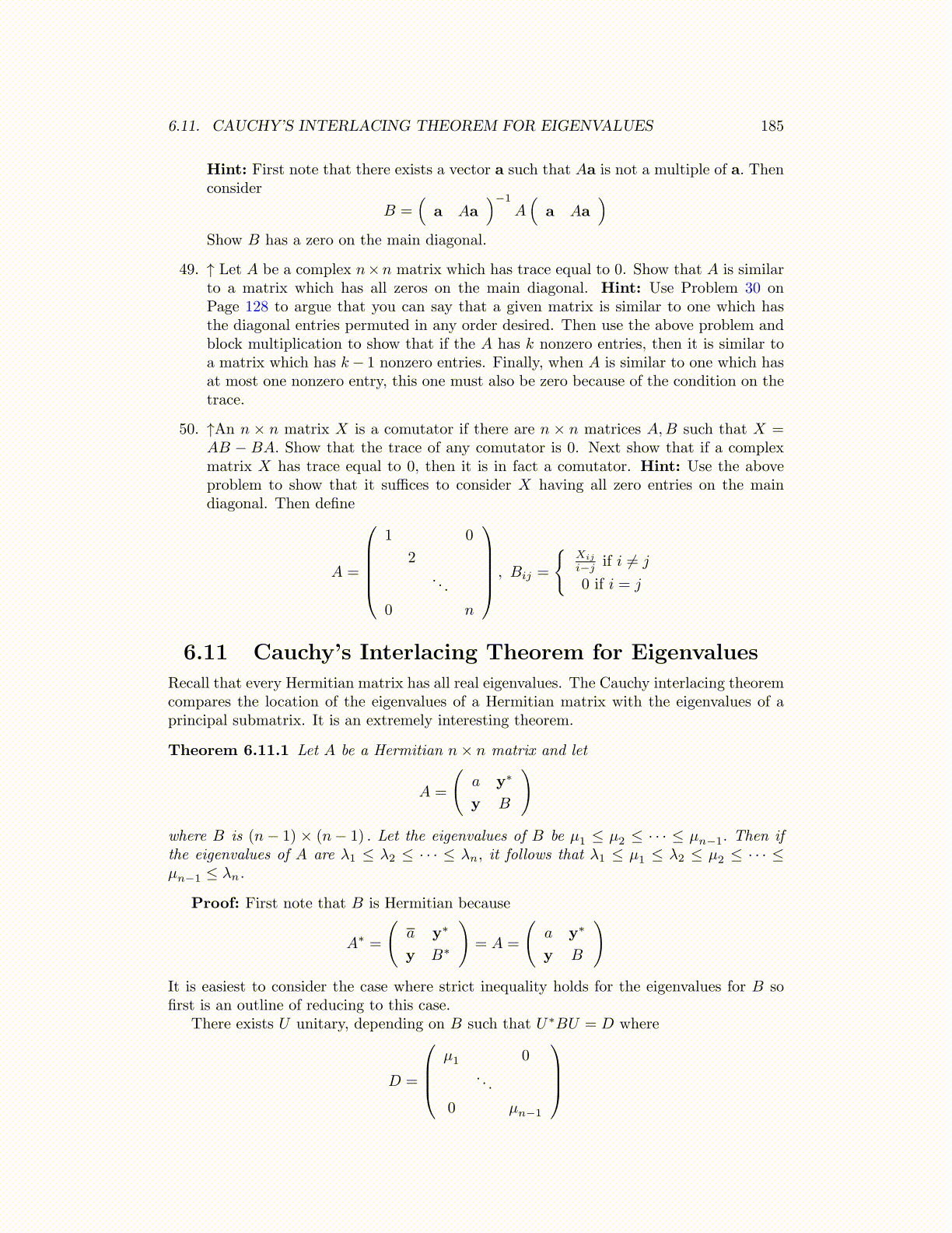 6.11. CAUCHY’S INTERLACING THEOREM FOR EIGENVALUES 185