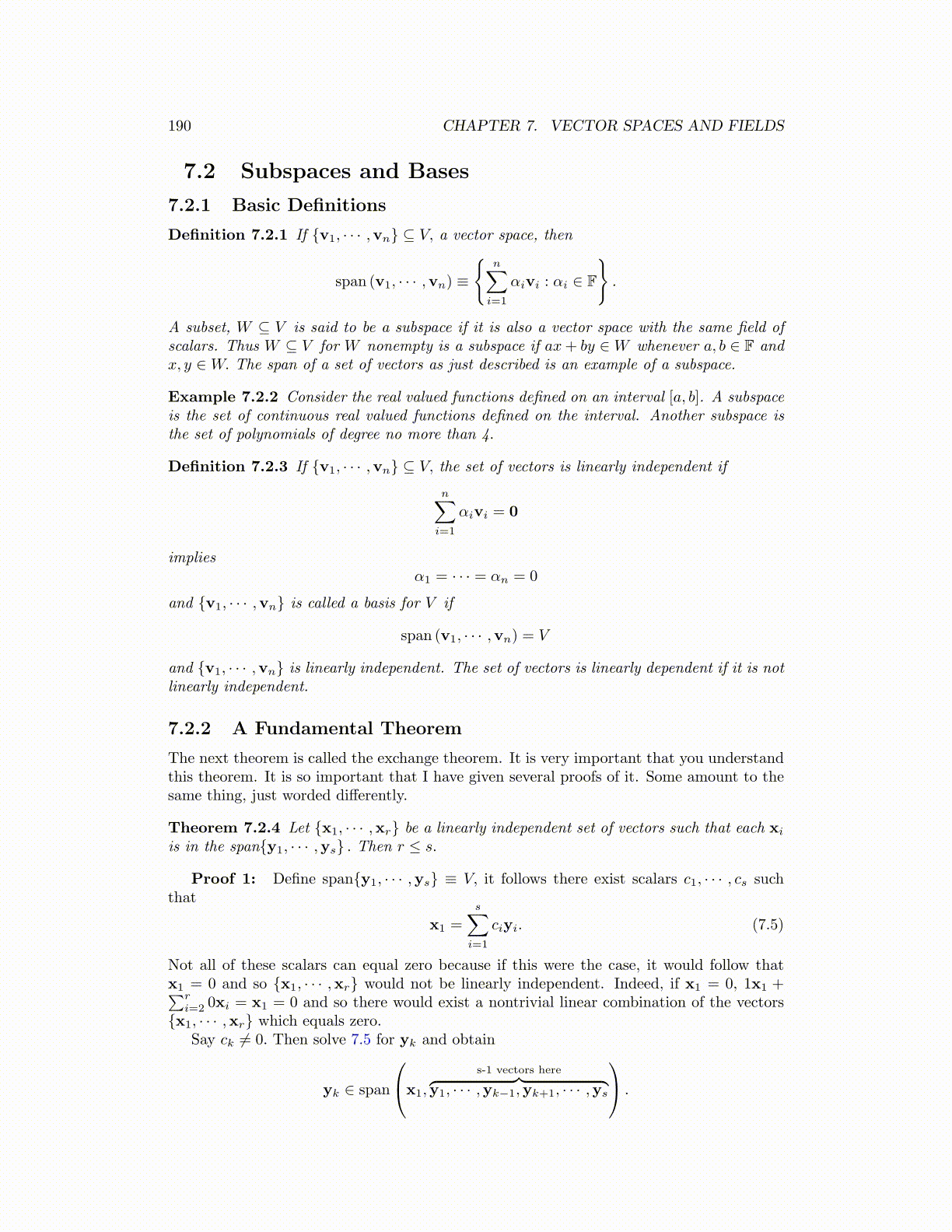 190 CHAPTER 7. VECTOR SPACES AND FIELDS
