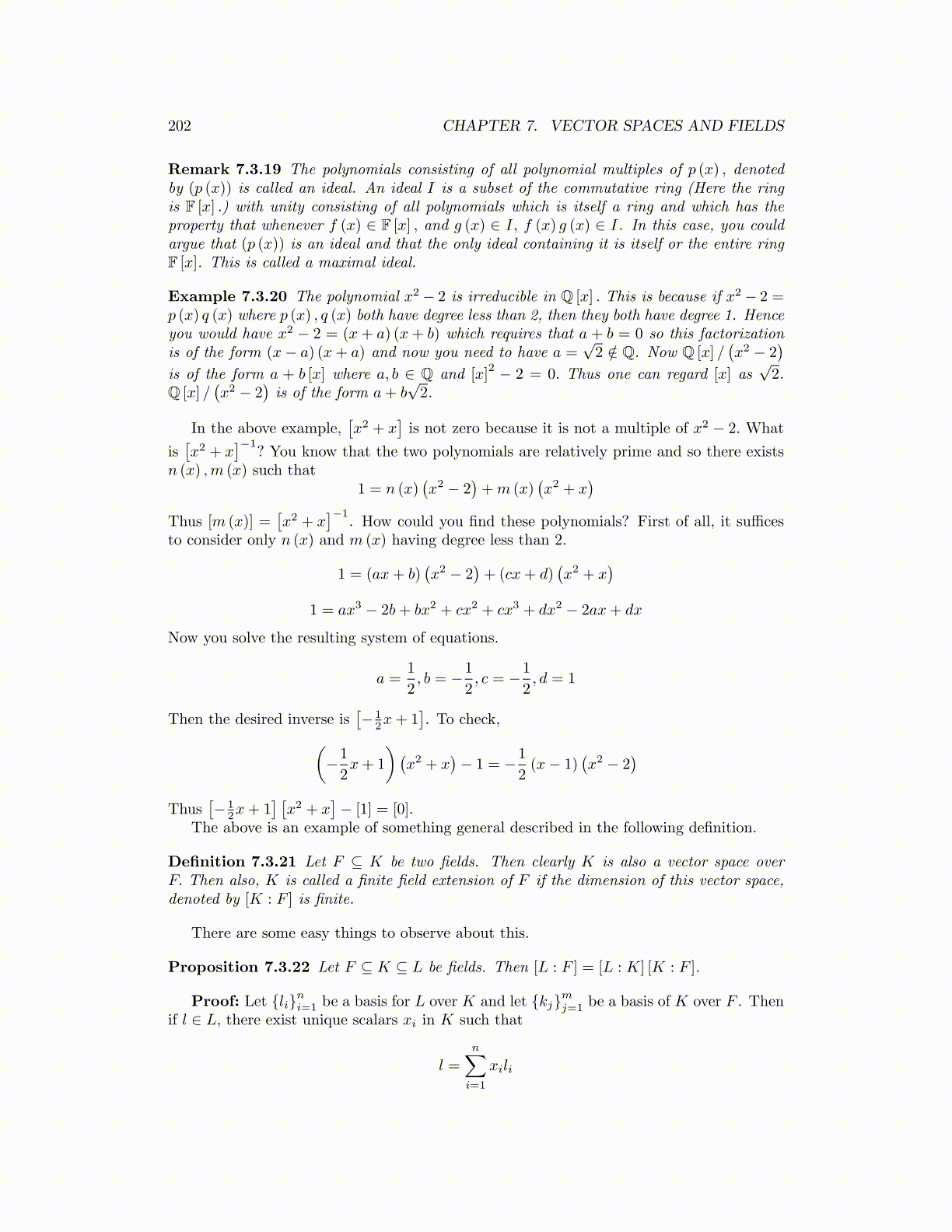 202 CHAPTER 7. VECTOR SPACES AND FIELDS