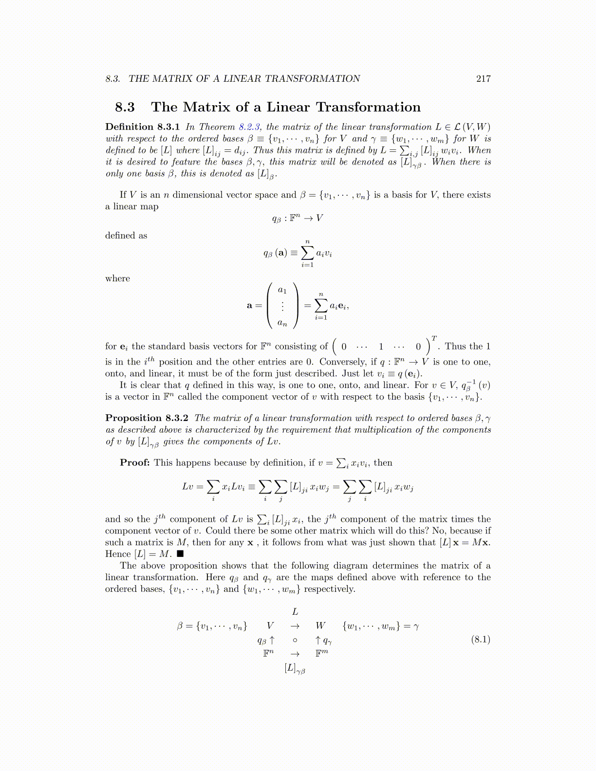 8.3. THE MATRIX OF A LINEAR TRANSFORMATION 217