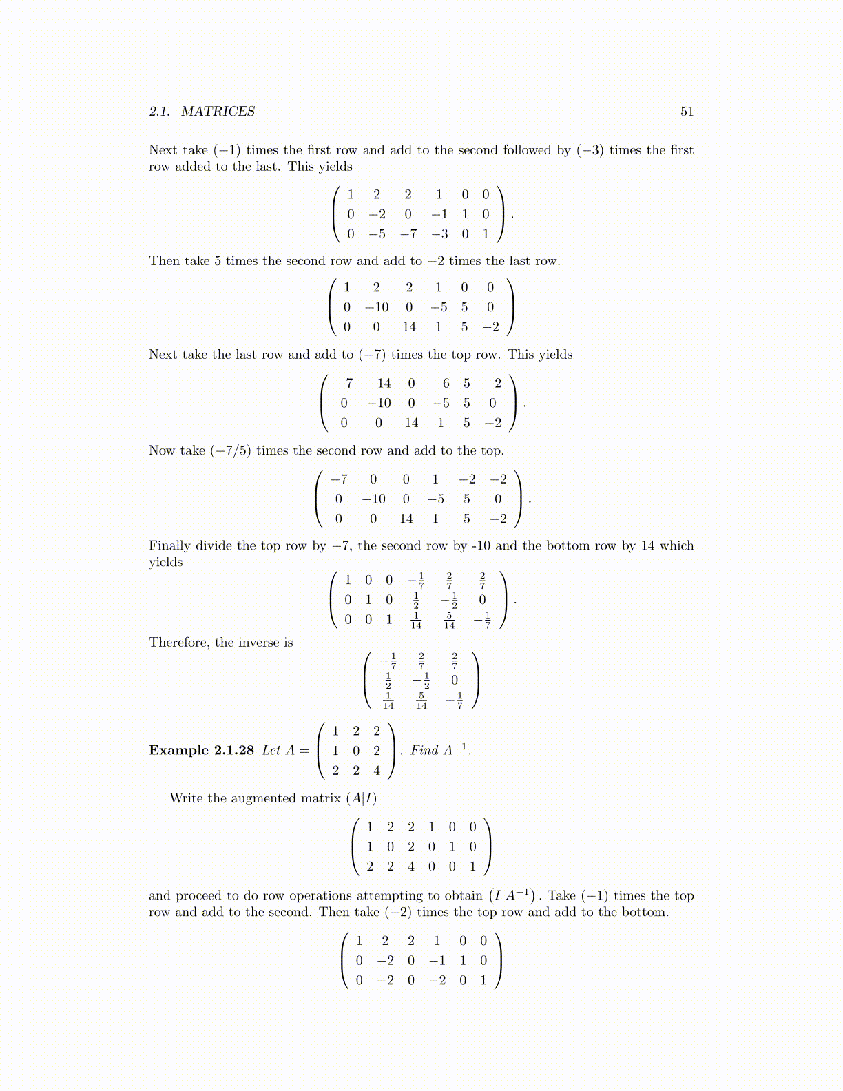 Finally divide the top row by −7, the second row by -10 and the bottom row by 14 whichyields 1 0 0 − 1