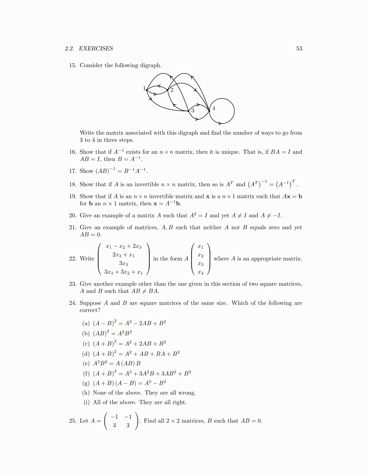 23. Give another example other than the one given in this section of two square matrices,A and B such that AB ̸= BA.