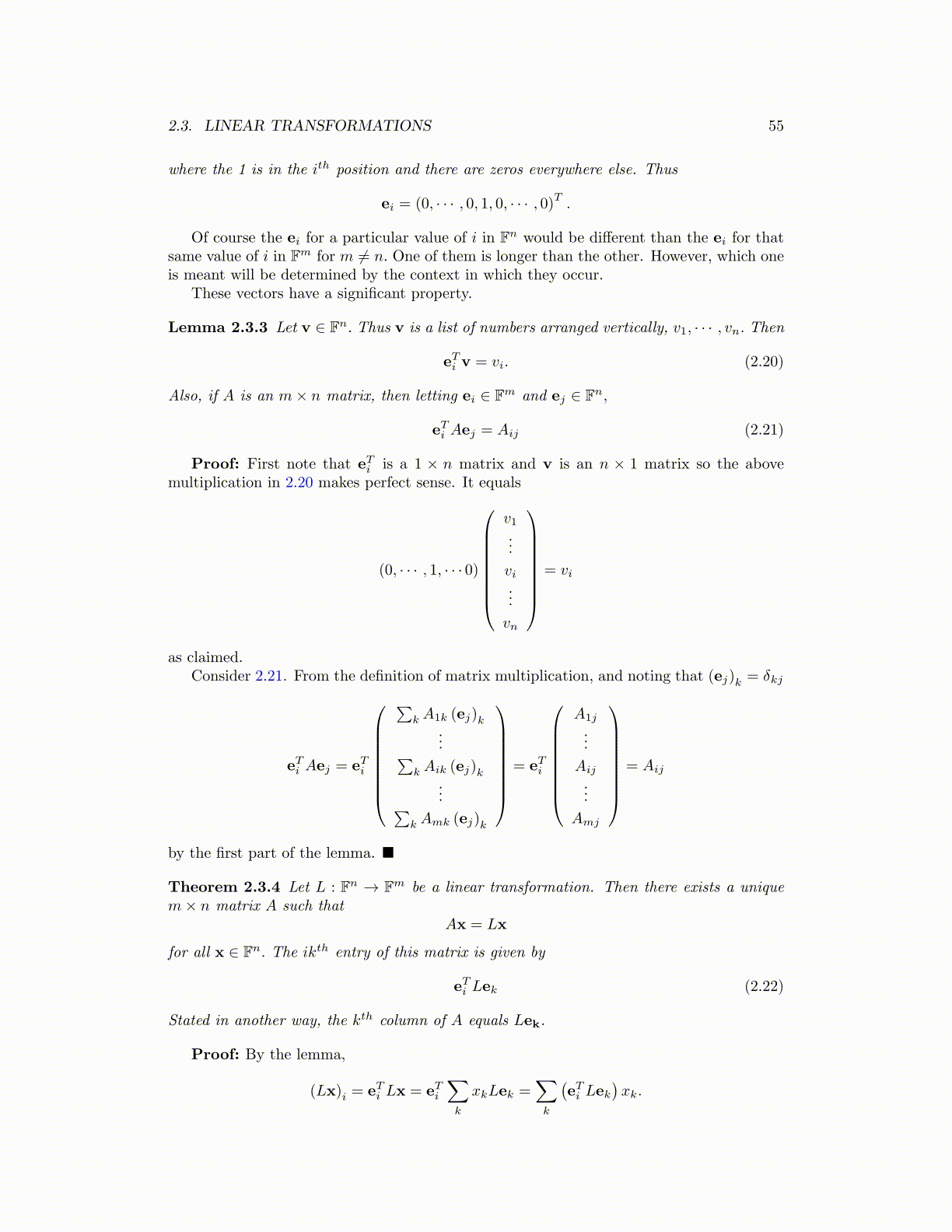Proof: First note that eTi is a 1 × n matrix and v is an n × 1 matrix so the abovemultiplication in 2.20 makes perfect sense. It equals