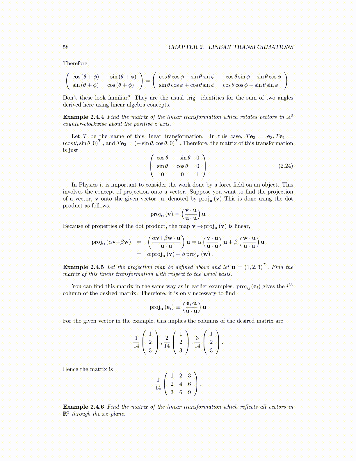 Example 2.4.4 Find the matrix of the linear transformation which rotates vectors in R3
