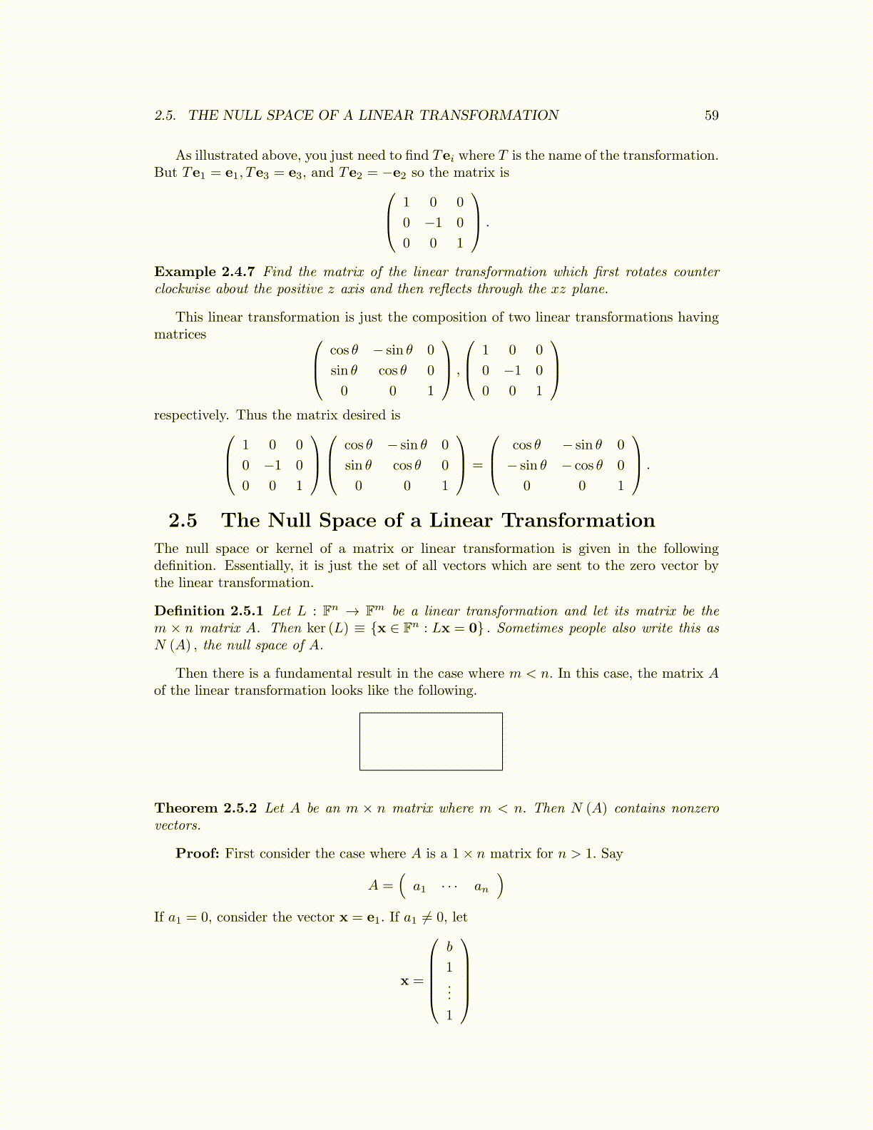 2.5. THE NULL SPACE OF A LINEAR TRANSFORMATION 59