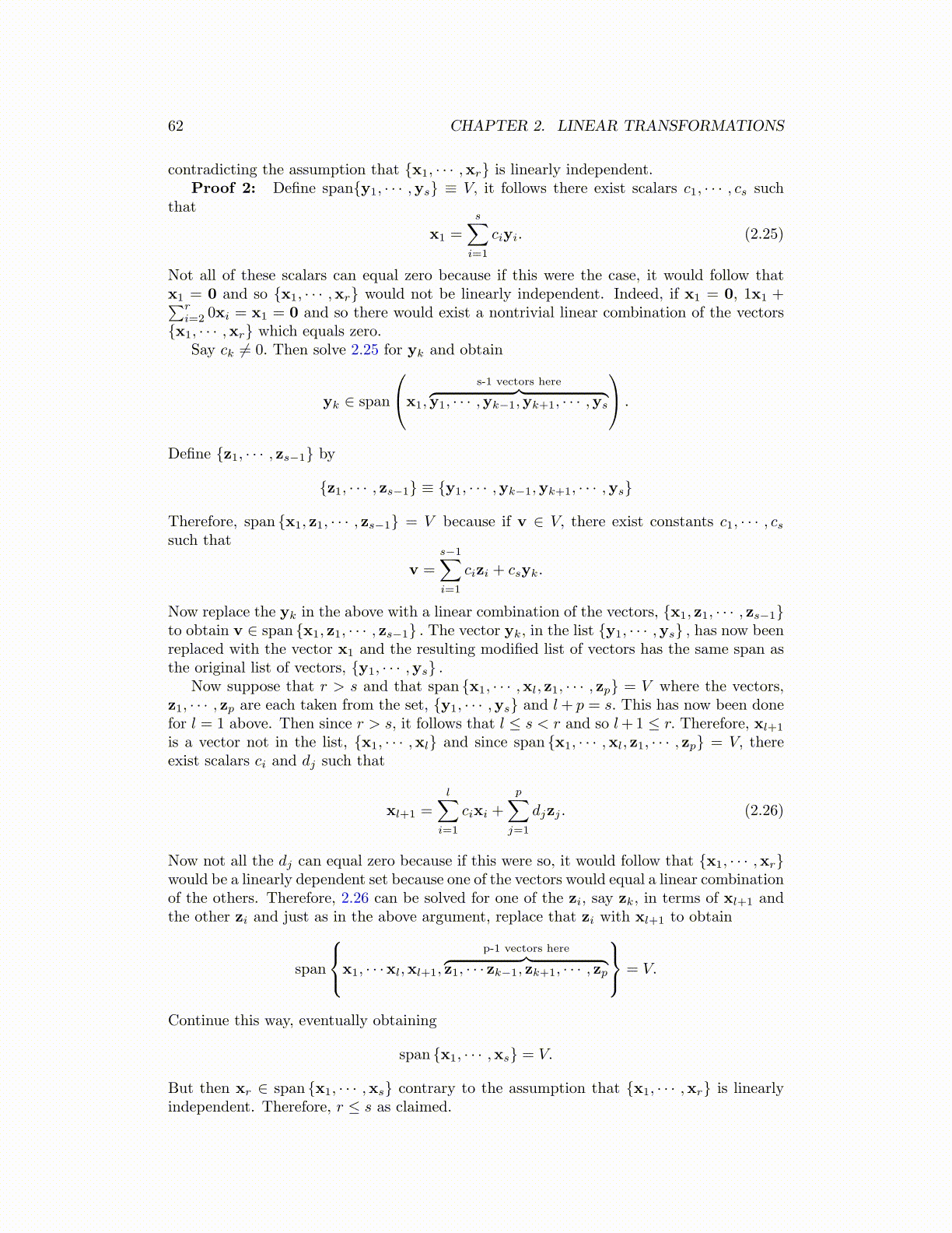 But then xr ∈ span {x1, · · · ,xs} contrary to the assumption that {x1, · · · ,xr} is linearlyindependent. Therefore, r ≤ s as claimed.