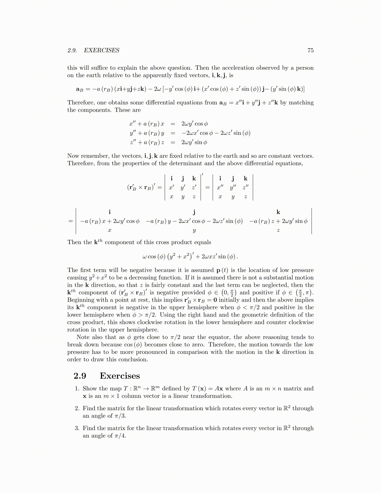 Note also that as ϕ gets close to π/2 near the equator, the above reasoning tends tobreak down because cos (ϕ) becomes close to zero. Therefore, the motion towards the lowpressure has to be more pronounced in comparison with the motion in the k direction inorder to draw this conclusion.