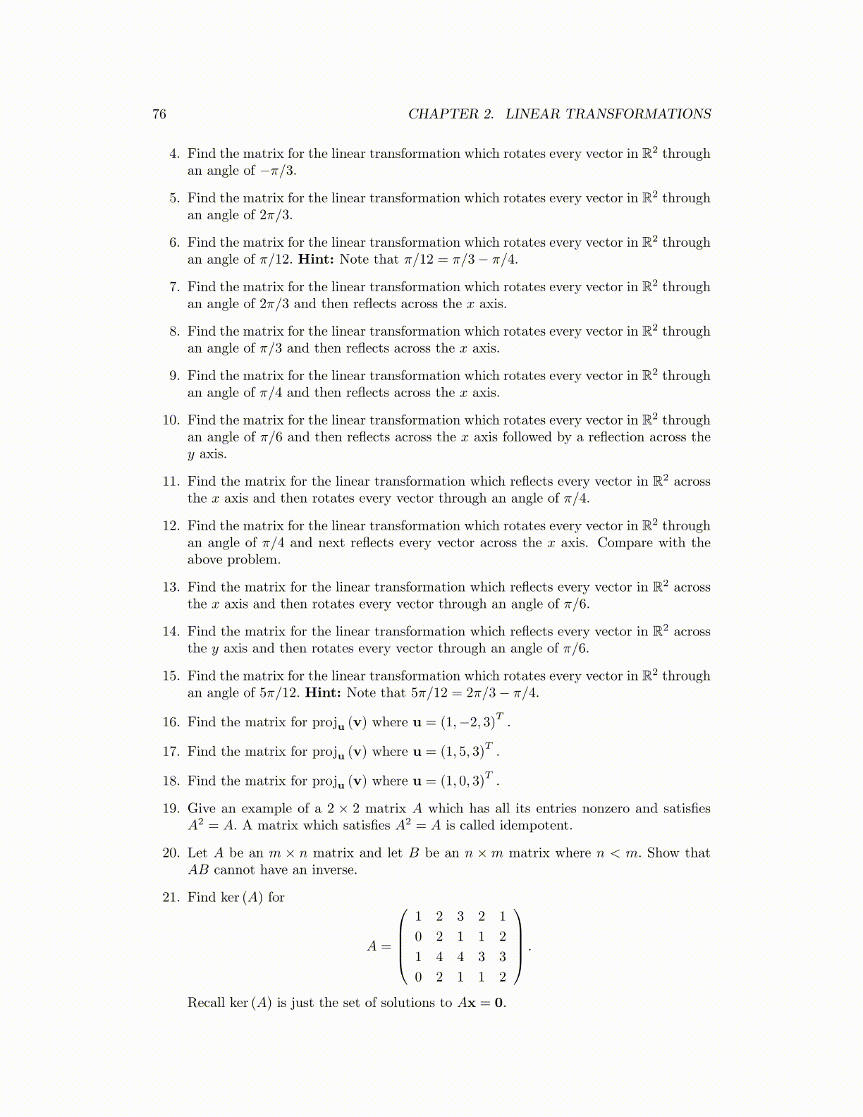 76 CHAPTER 2. LINEAR TRANSFORMATIONS