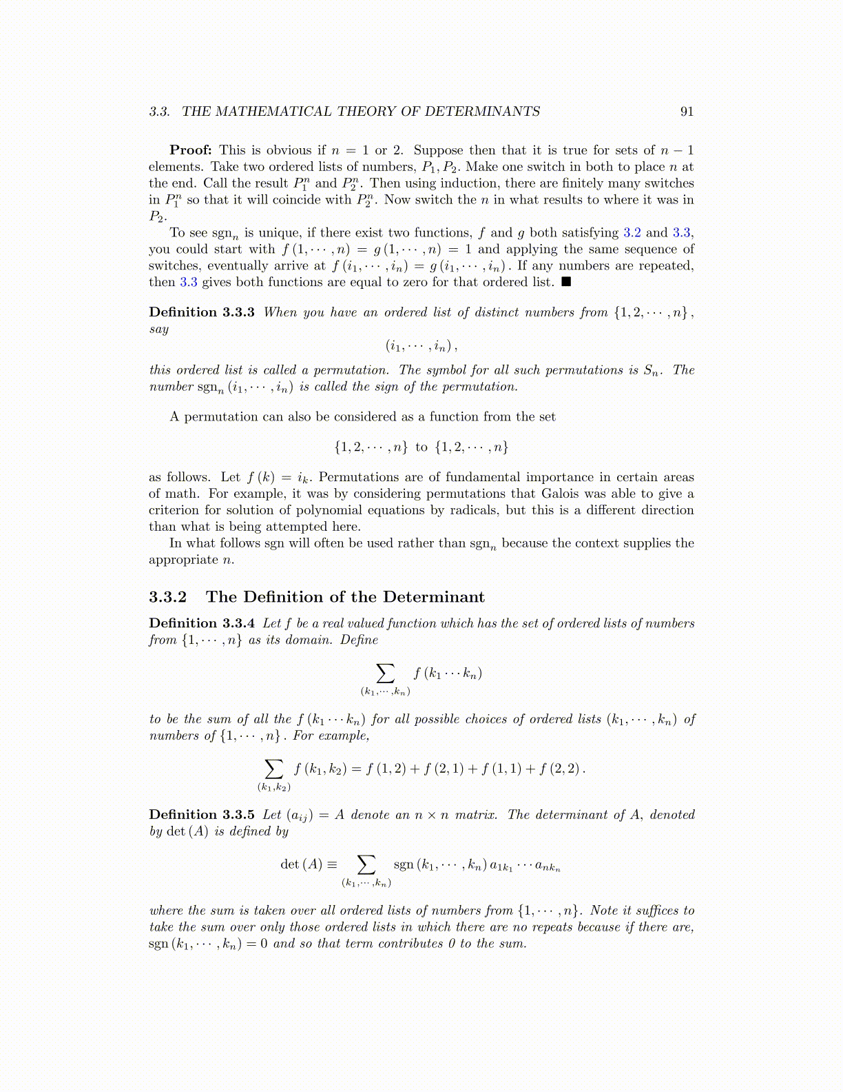 3.3. THE MATHEMATICAL THEORY OF DETERMINANTS 91