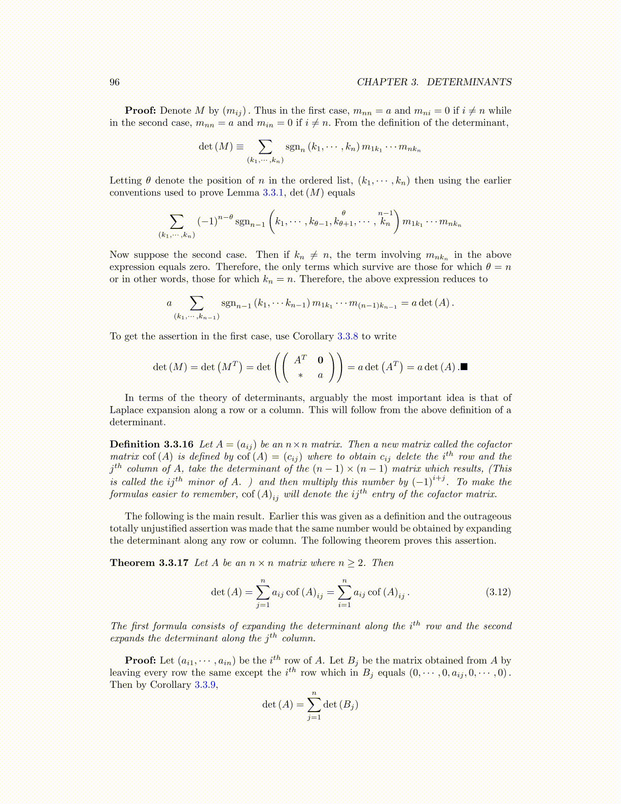Theorem 3.3.17 Let A be an n× n matrix where n ≥ 2. Then