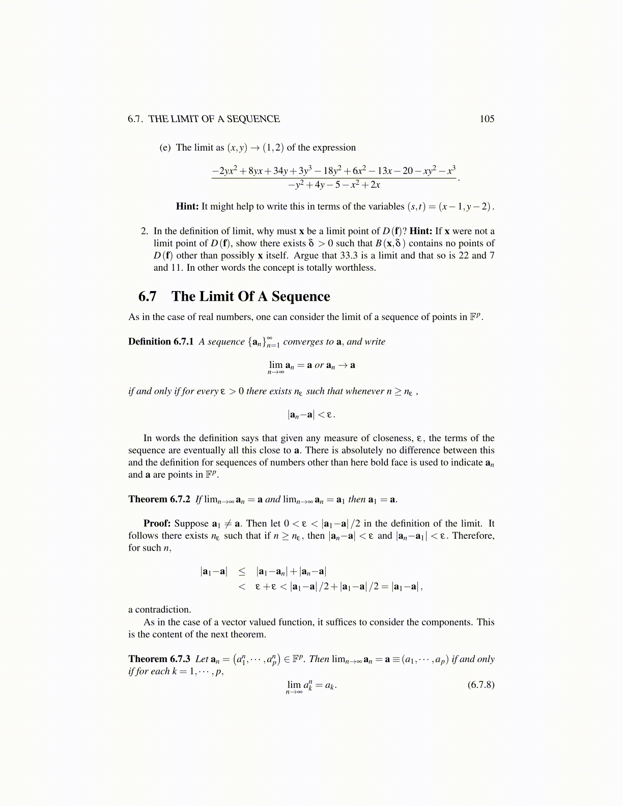 6.7 The Limit Of A SequenceAs in the case of real numbers, one can consider the limit of a sequence of points in Fp.