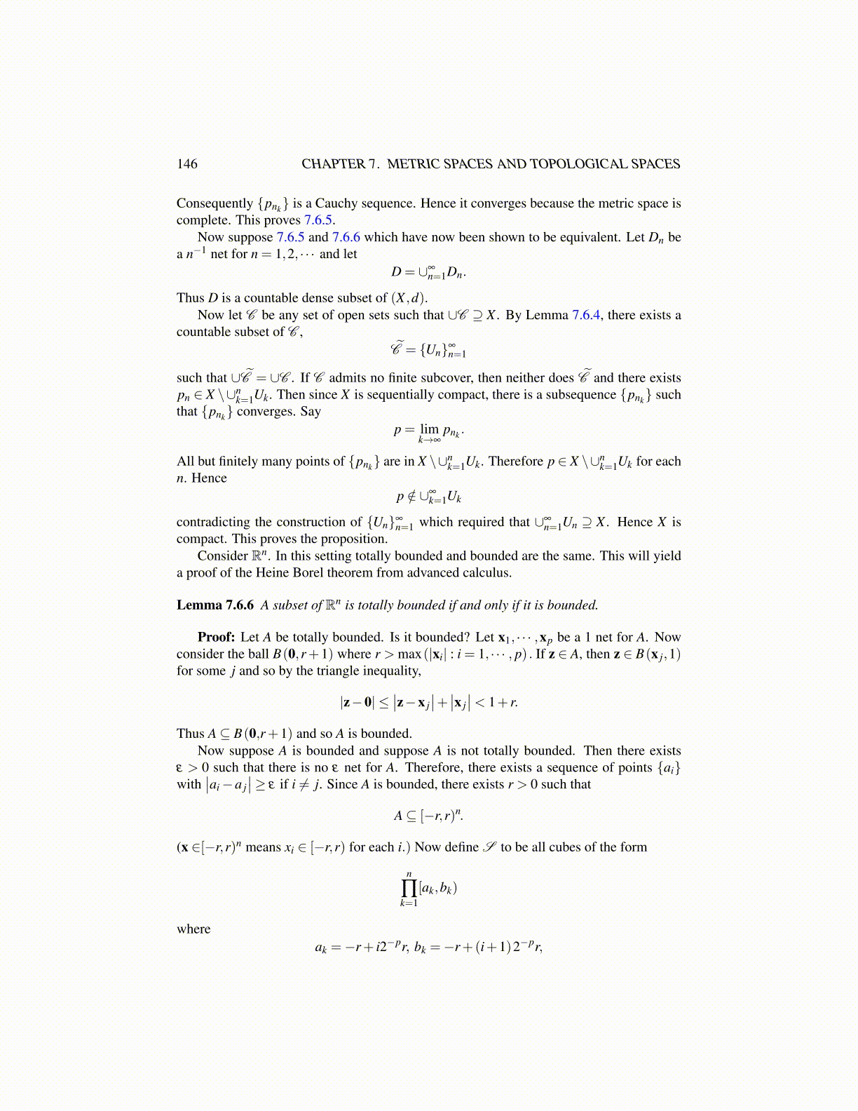 Lemma 7.6.6 A subset of Rn is totally bounded if and only if it is bounded.