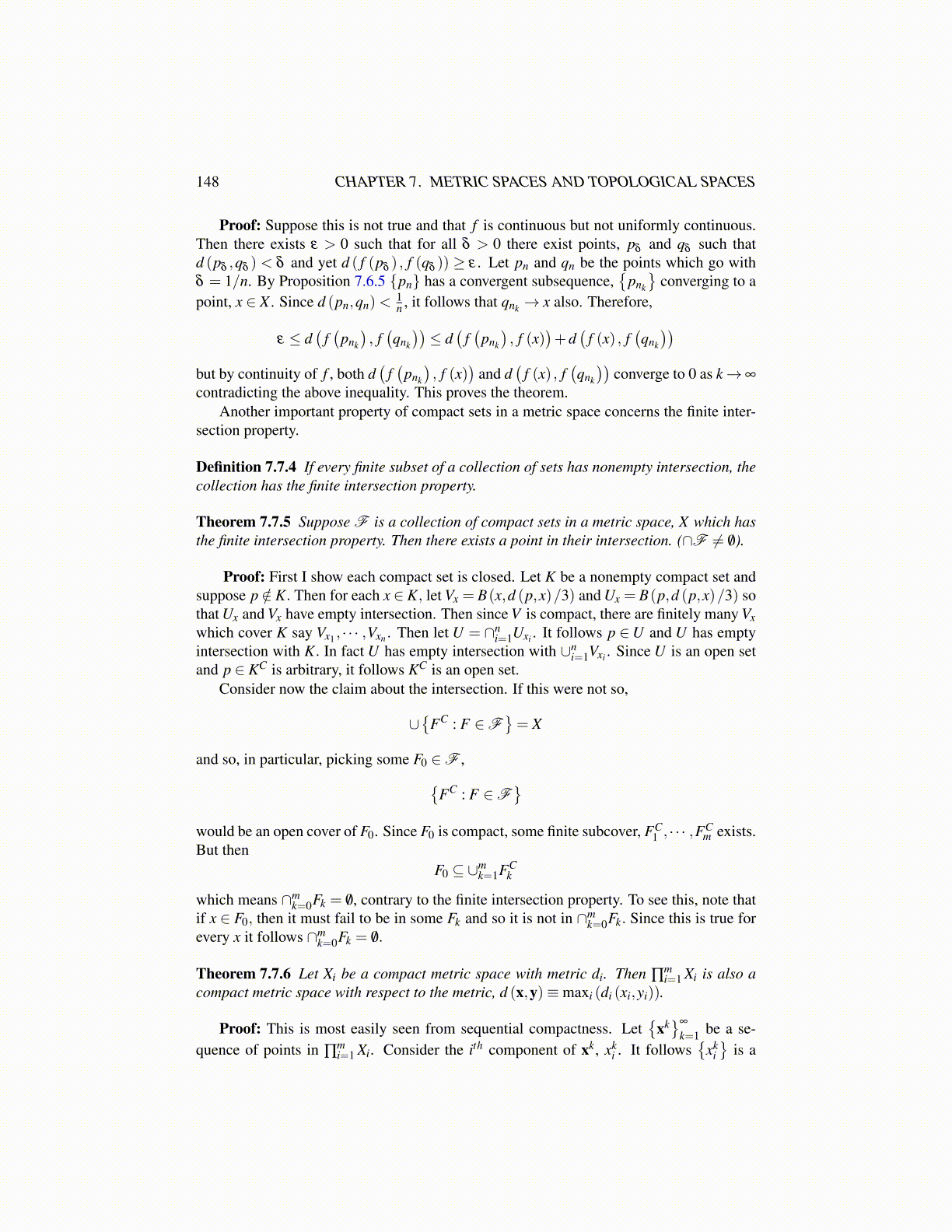 Theorem 7.7.6 Let Xi be a compact metric space with metric di. Then ∏mi=1 Xi is also a