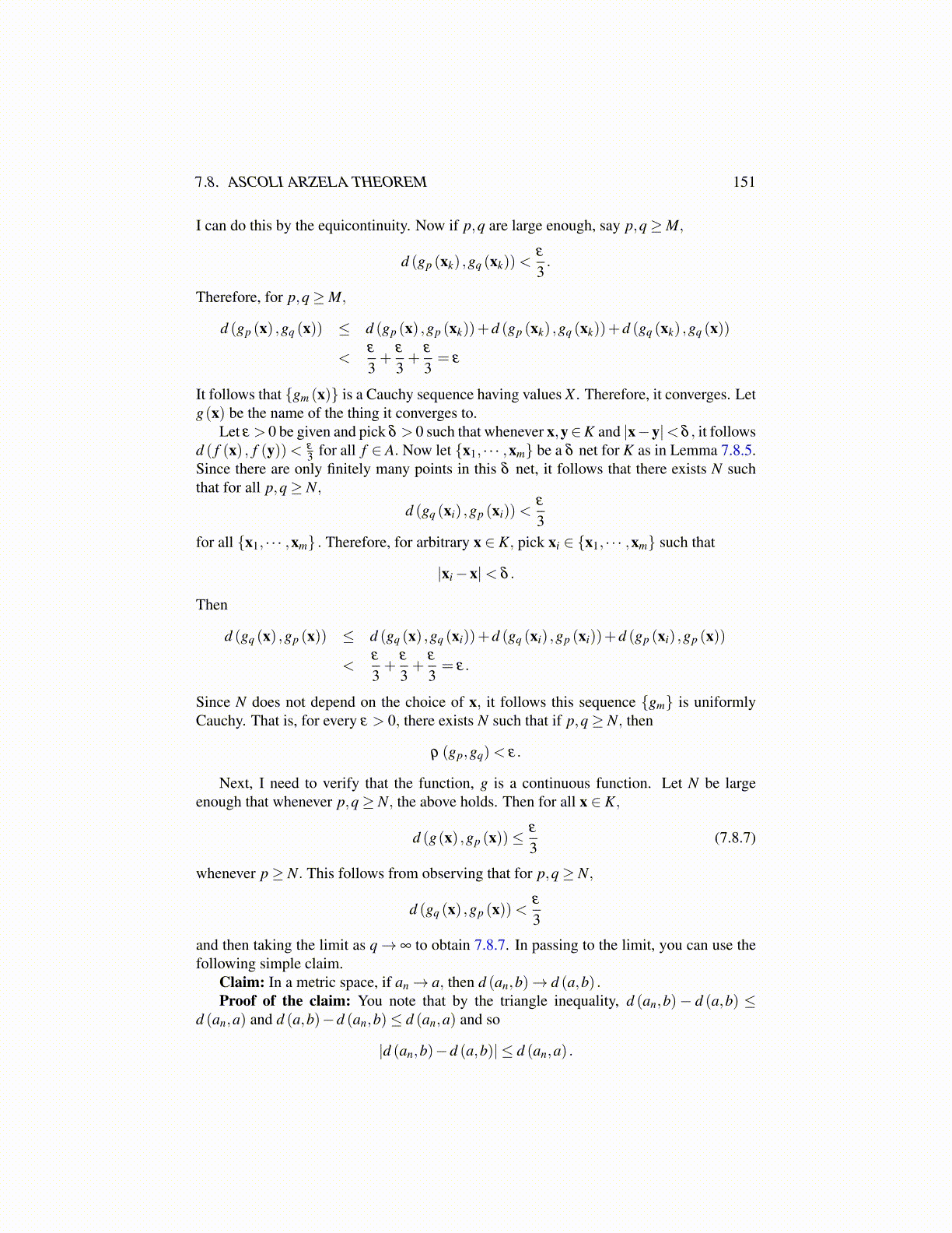 and then taking the limit as q→ ∞ to obtain 7.8.7. In passing to the limit, you can use thefollowing simple claim.
