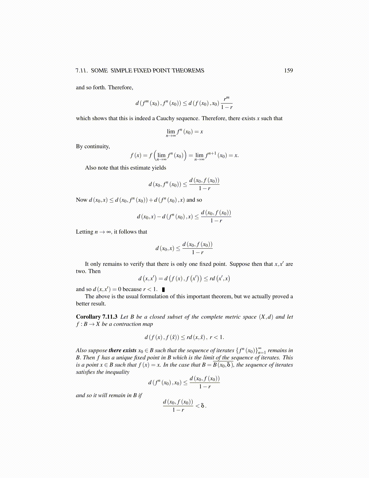 7.11. SOME SIMPLE FIXED POINT THEOREMS 159