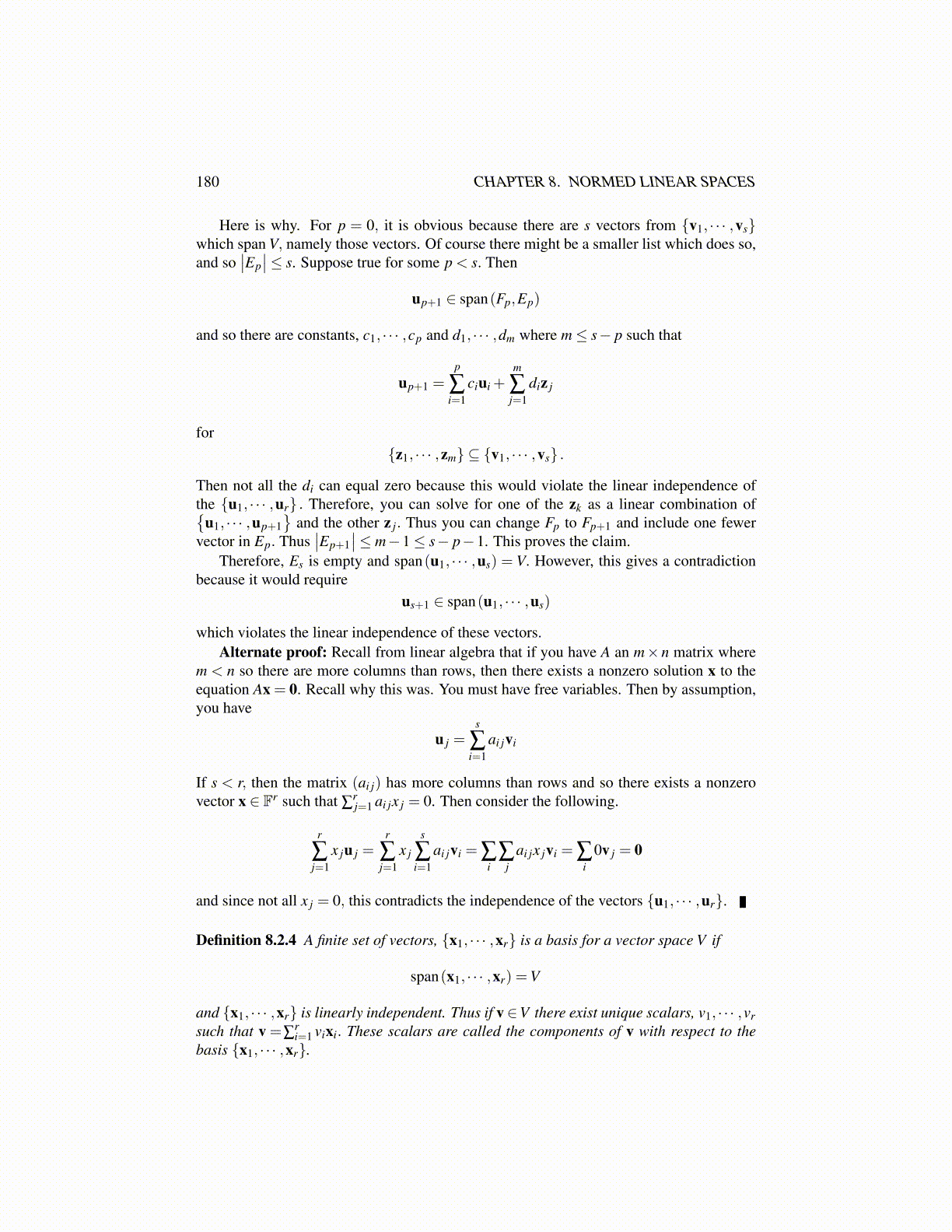 Definition 8.2.4 A finite set of vectors, {x1, · · · ,xr} is a basis for a vector space V if