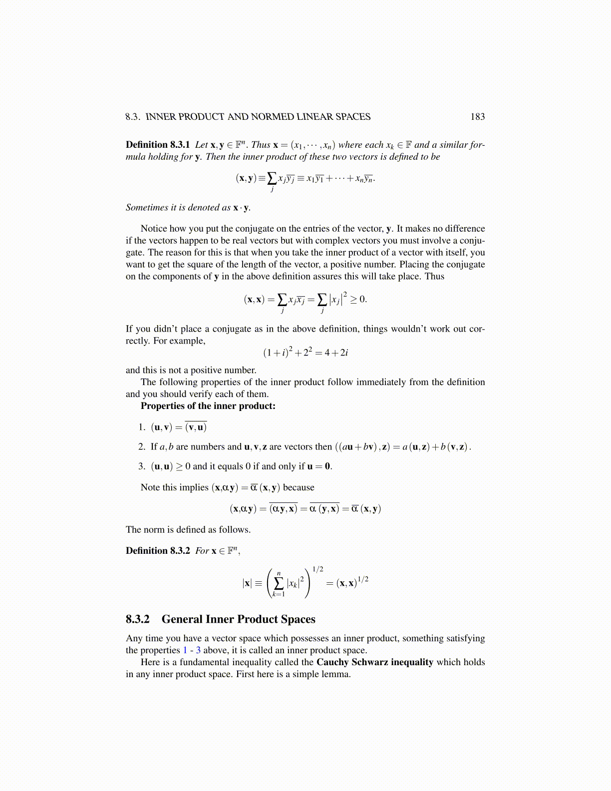 8.3. INNER PRODUCT AND NORMED LINEAR SPACES 183