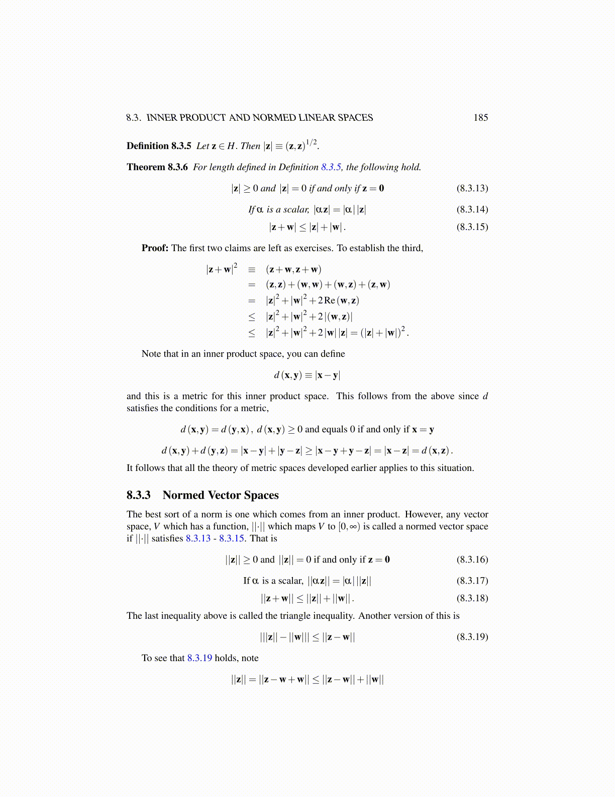 8.3. INNER PRODUCT AND NORMED LINEAR SPACES 185