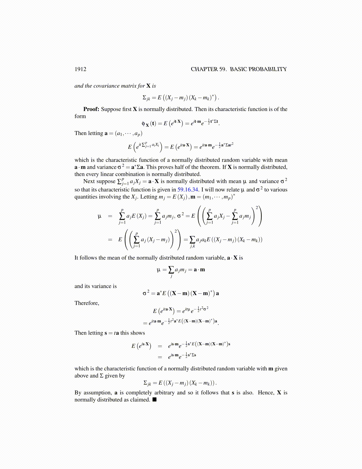 Proof: Consider E(eit·X) for X∼ Np (m,Σ).