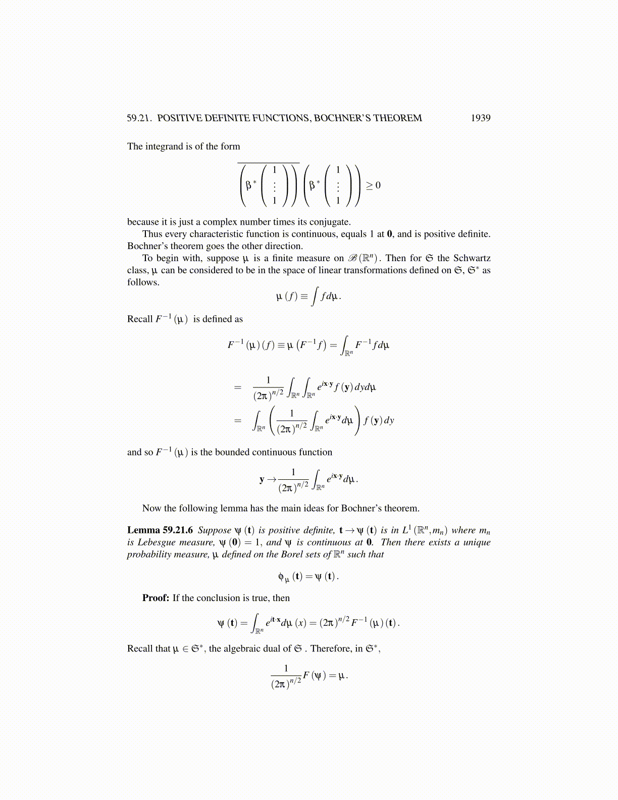 59.21. POSITIVE DEFINITE FUNCTIONS, BOCHNER’S THEOREM 1939