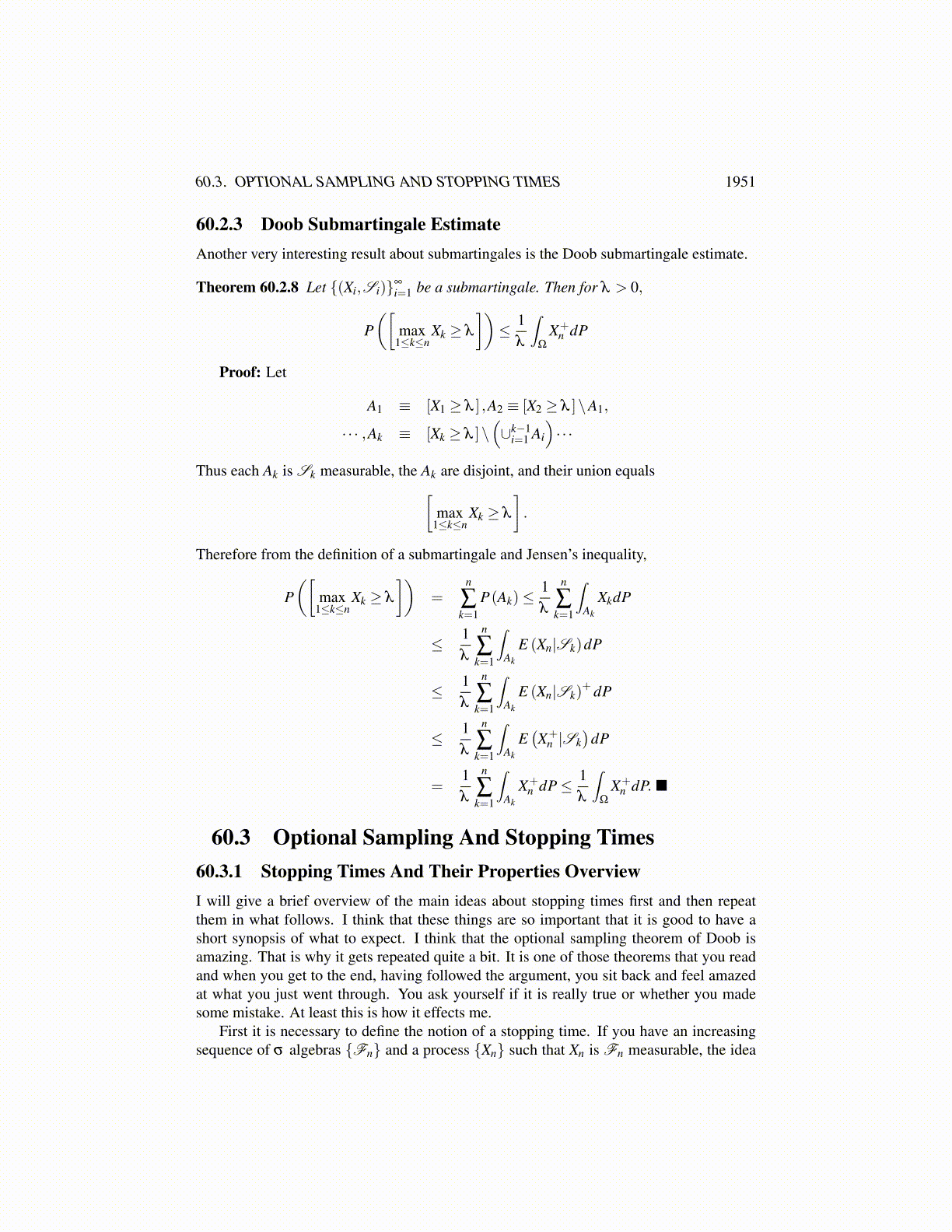 where the zero on the right side results from a string of ones which does not producean upcrossing. It is here that it is important that φ (x) ≥ a. Such a string begins withφ (Xk (ω)) = a and results in an expression of the form φ (Xk+m (ω))−φ (Xk (ω))≥ 0 sinceφ (Xk+m (ω))≥ a. If Xk had not been replaced with φ (Xk) , it would have been possible forφ (Xk+m (ω)) to be less than a and the zero in the above could have been a negative numberThis would have been inconvenient.
