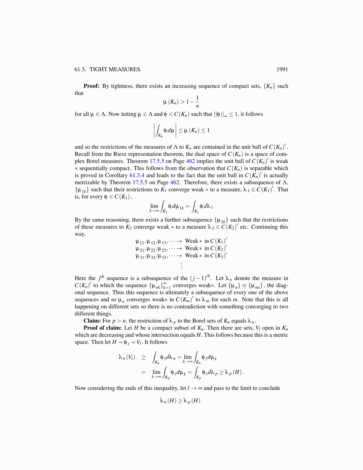 Lemma 61.3.2 Let E be a separable complete metric space and let Λ be a set of Borelprobability measures. Then Λ is tight if and only if for every ε > 0 and r > 0 there exists afinite collection of balls, {B(ai,r)}m