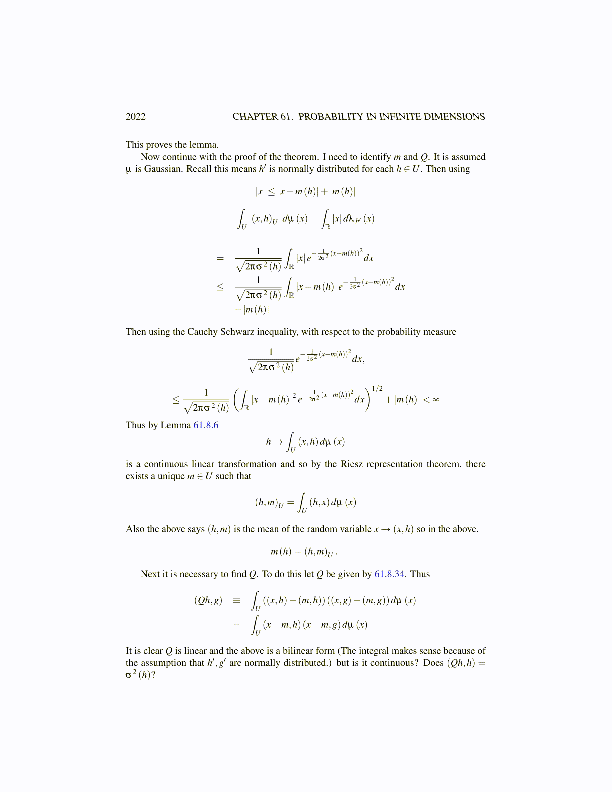 (x,h)U dµ (x) = (m,h)U (61.8.33)∫((x,h)− (m,h))((x,g)− (m,g))dµ (x) = (Qh,g) (61.8.34)∫