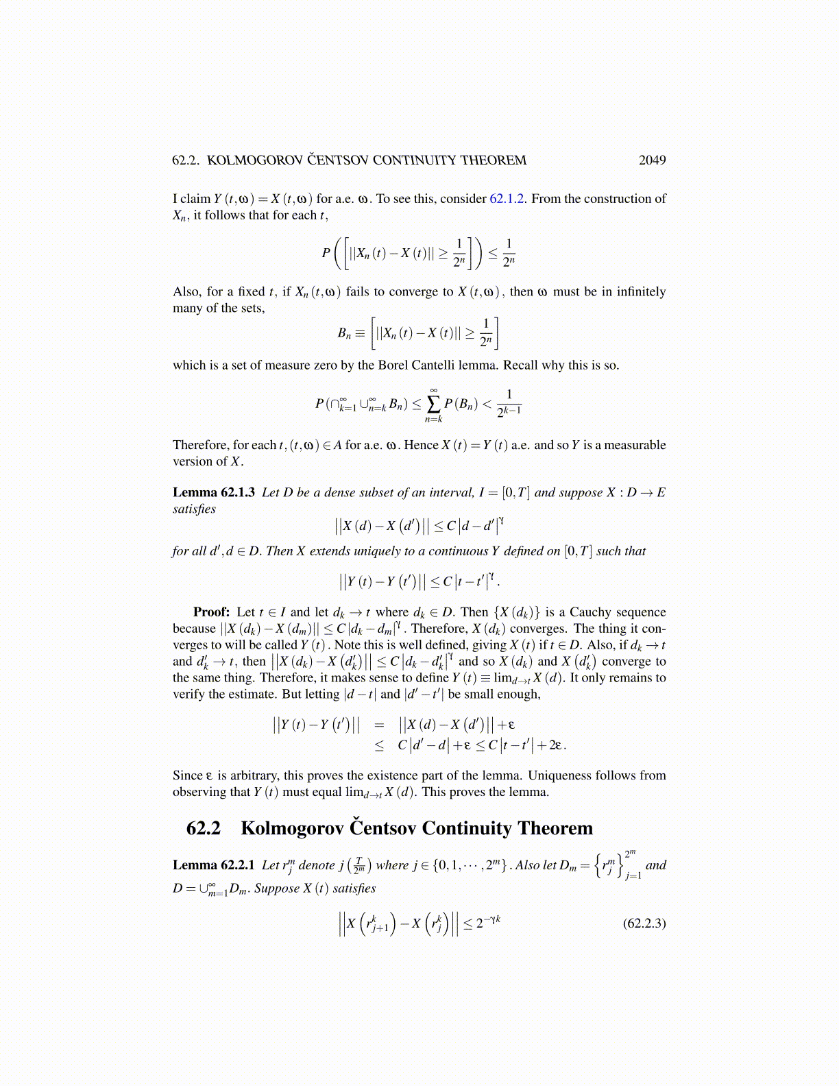 Lemma 62.1.1 A stochastically continuous process on [a,b]≡ I is uniformly stochasticallycontinuous on [a,b]≡ I.