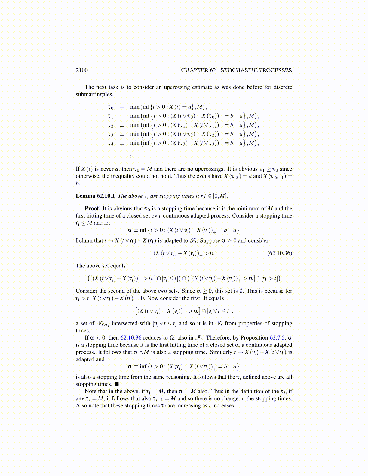 Theorem 62.9.5 Let {X (t)} be a right continuous submartingale adapted to the normalfiltration Ft for t ∈ [0,T ] and X∗ (t) defined as in Theorem 62.9.4