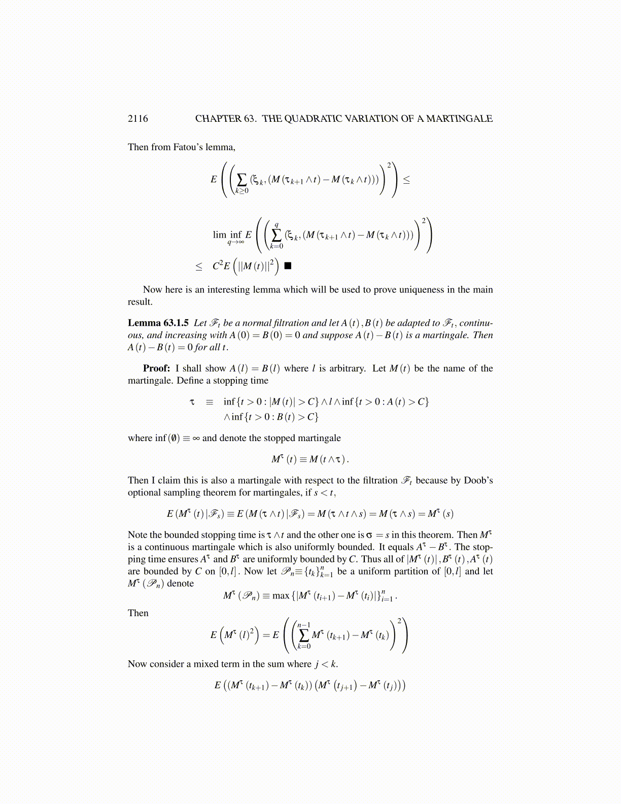 2116 CHAPTER 63. THE QUADRATIC VARIATION OF A MARTINGALE