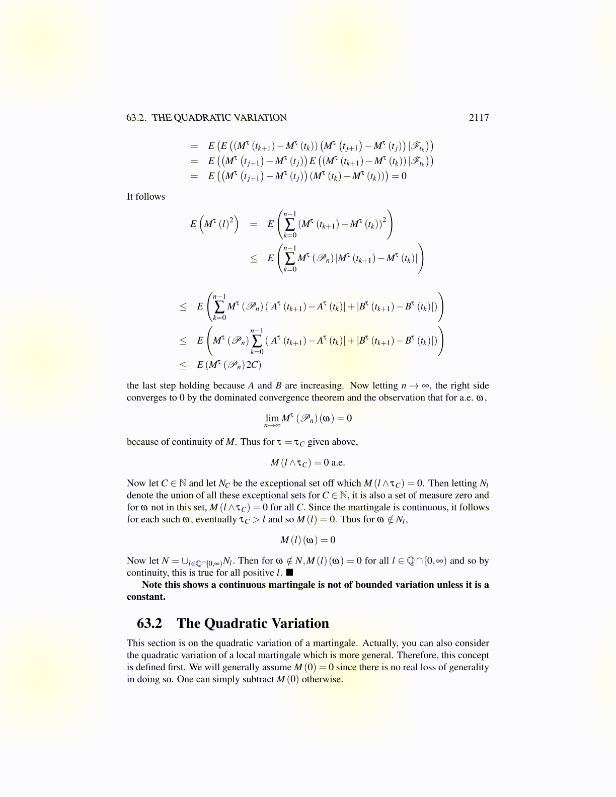 Consider the term E ((M (τk ∧ t) ,M (τk+1∧ t))) . By Doob’s optional sampling theorem formartingales and Corollary 63.1.3 again, this equals