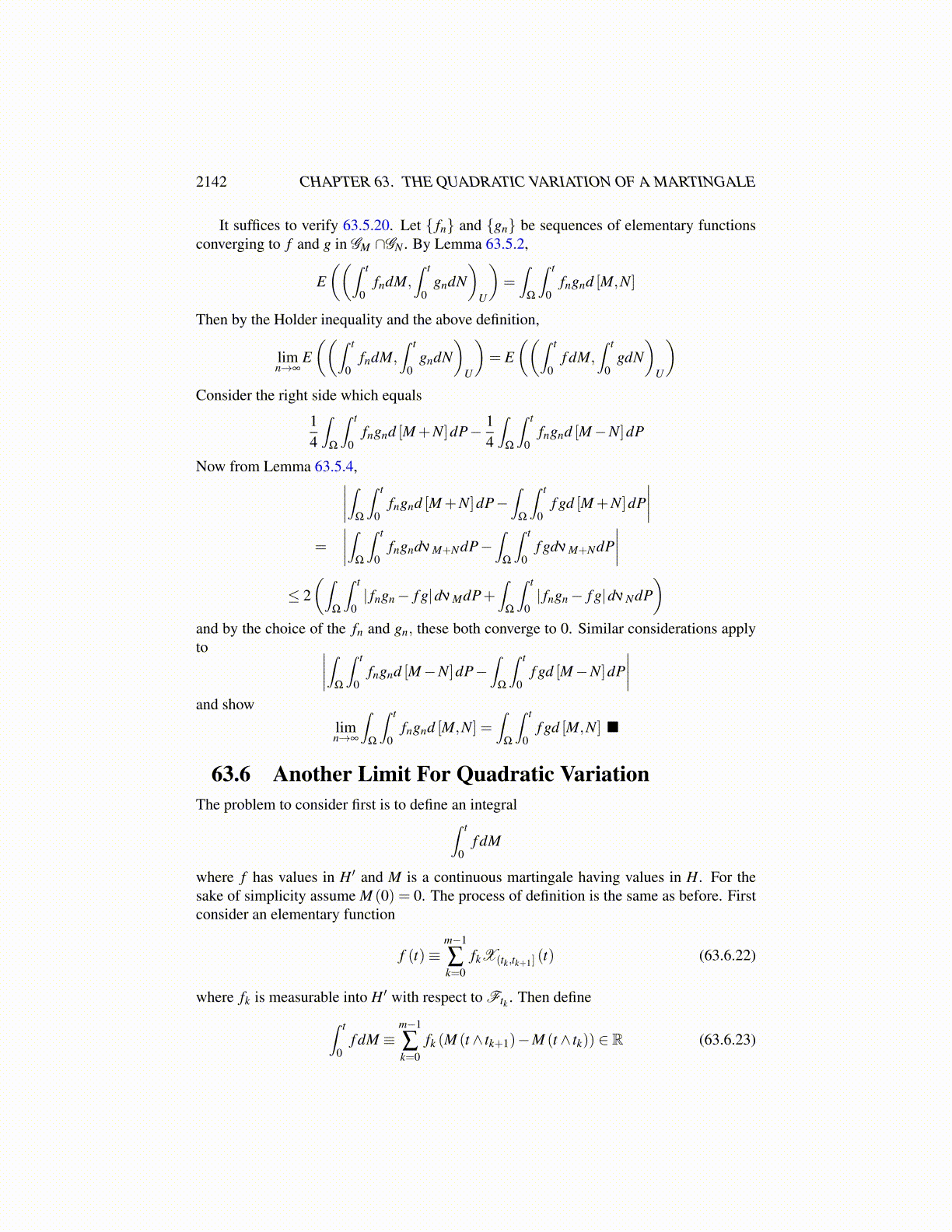 2142 CHAPTER 63. THE QUADRATIC VARIATION OF A MARTINGALE