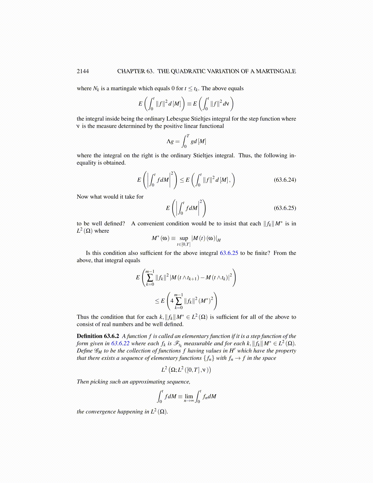 2144 CHAPTER 63. THE QUADRATIC VARIATION OF A MARTINGALE