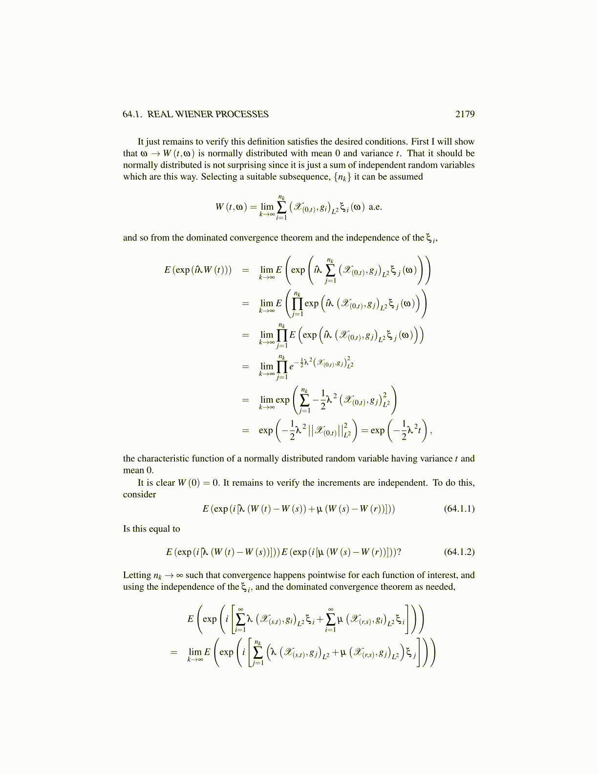 64.1 Real Wiener ProcessesHere is the definition of a Wiener process.