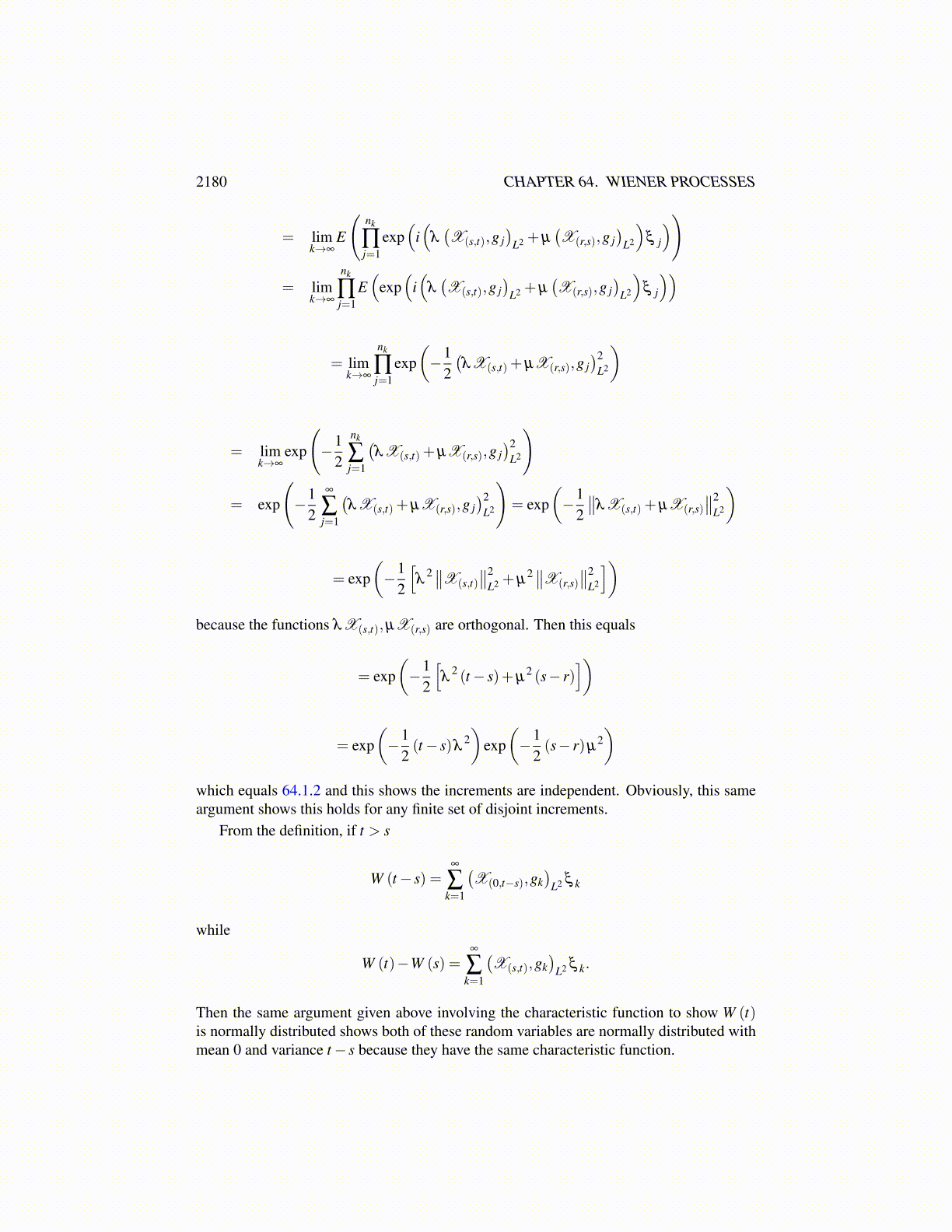 2180 CHAPTER 64. WIENER PROCESSES