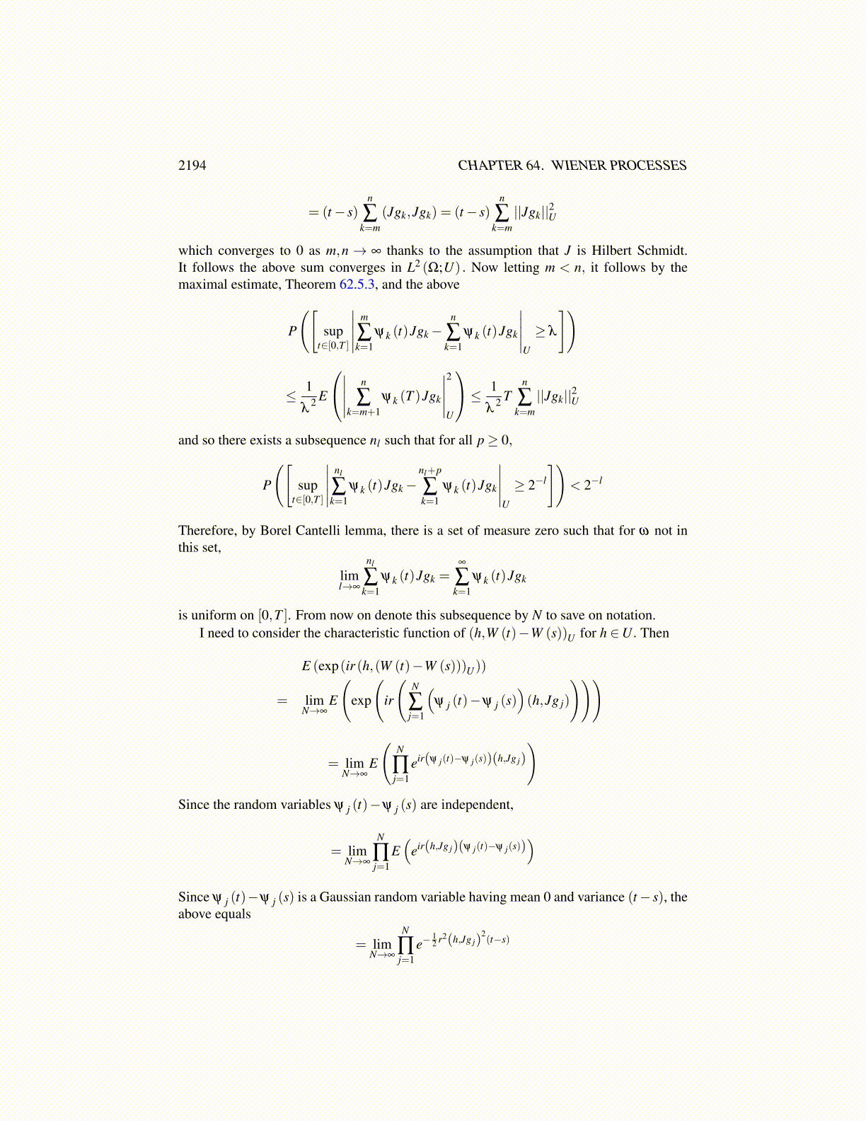 64.5 Hilbert Space Valued Wiener ProcessesNext I will consider the case of Hilbert space valued Wiener processes. This will includethe case of Rn valued Wiener processes. I will present this material independent of themore general case of E valued Wiener processes.