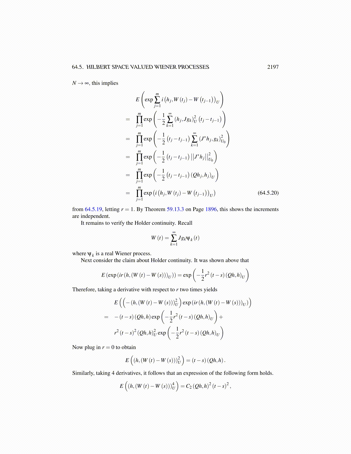 64.5. HILBERT SPACE VALUED WIENER PROCESSES 2197