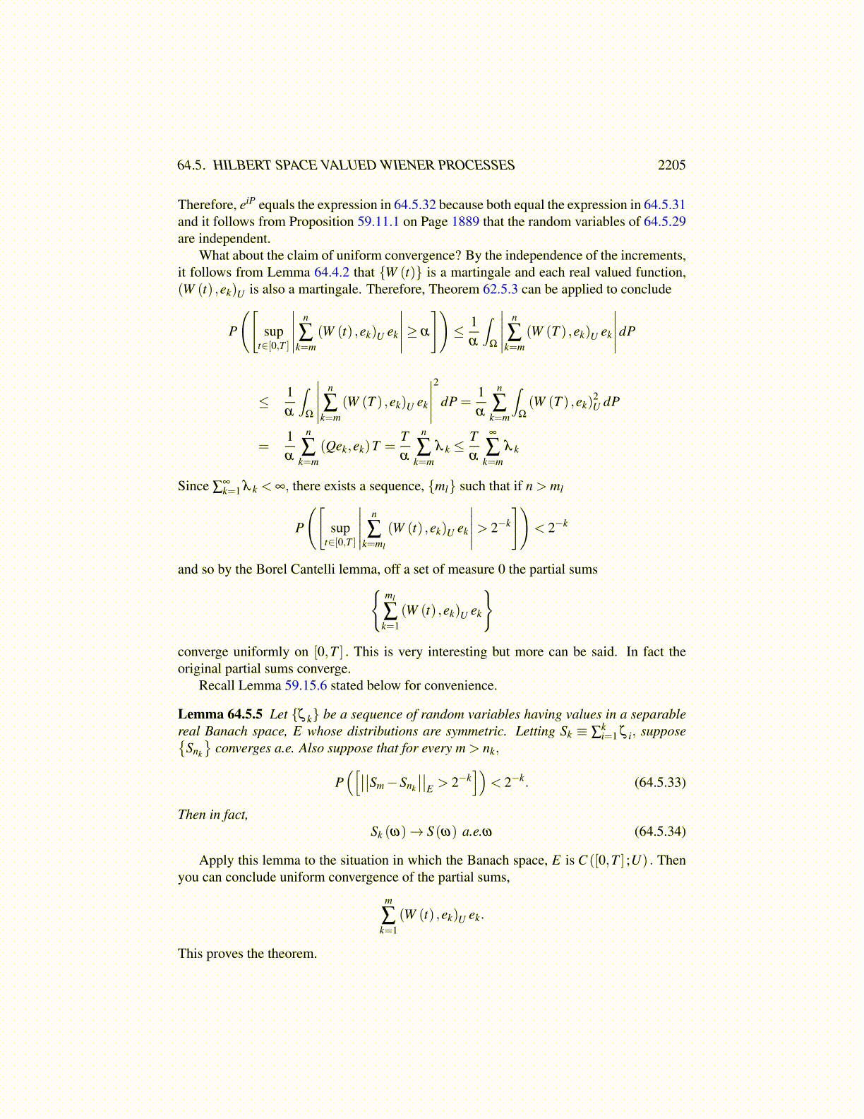 Proof: First of all, the fact that W (t) has values in U and that {ek} is an orthonormalbasis implies the sum in 64.5.28 converges for each ω. Consider