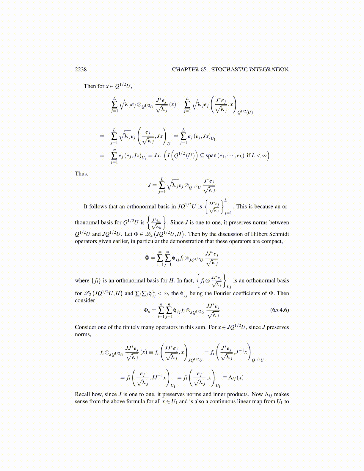 Lemma 65.4.3 Let A ∈L (U,U) be a bounded linear transformation defined on U a sep-arable real Hilbert space. There exists a one to one Hilbert Schmidt operator J : AU →U1where U1 is a separable real Hilbert space. In fact you can take U1 =U.